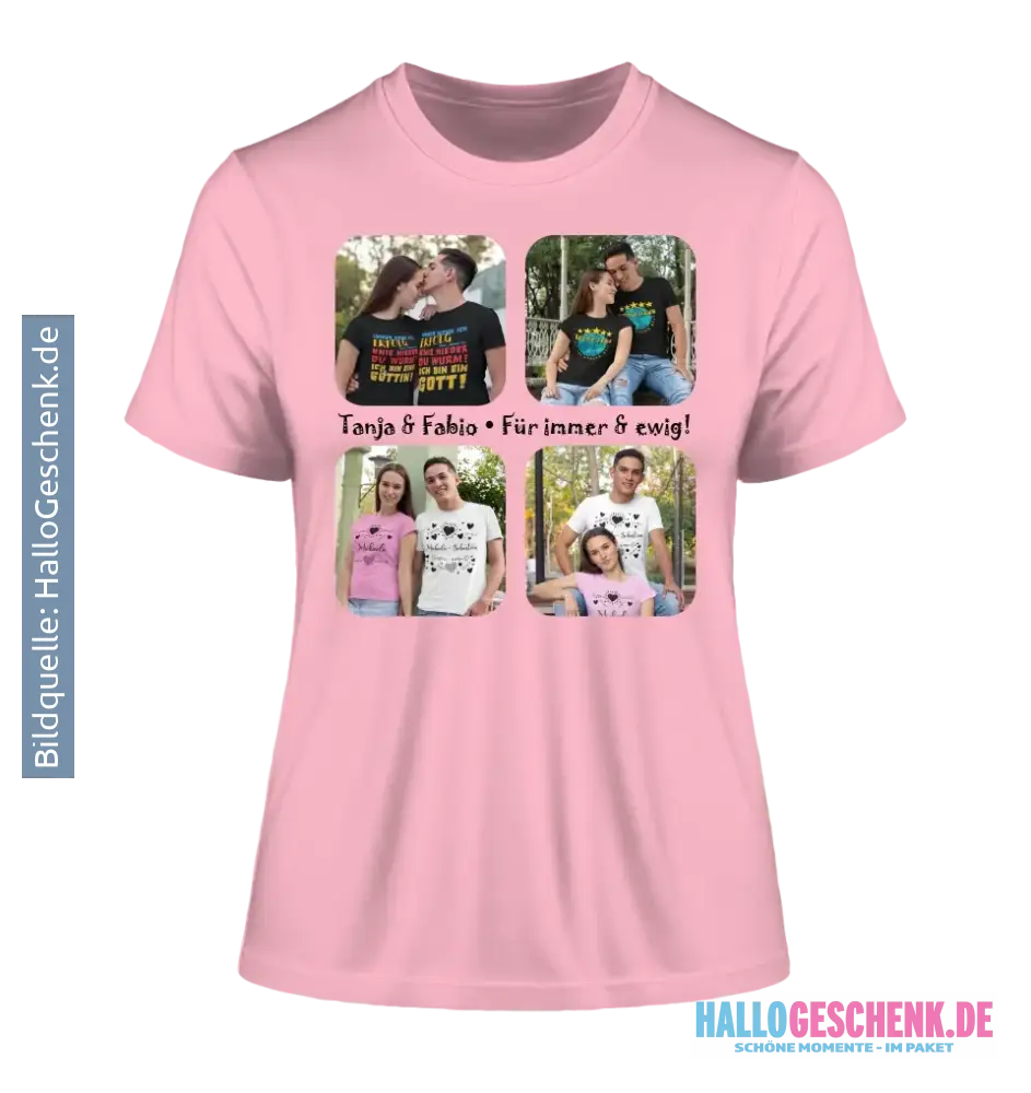 4 Fotos mit Text • Fotogeschenk • Ladies Premium T-Shirt XS-2XL aus Bio-Baumwolle für Damen • Exklusivdesign • personalisiert