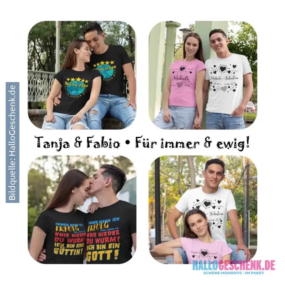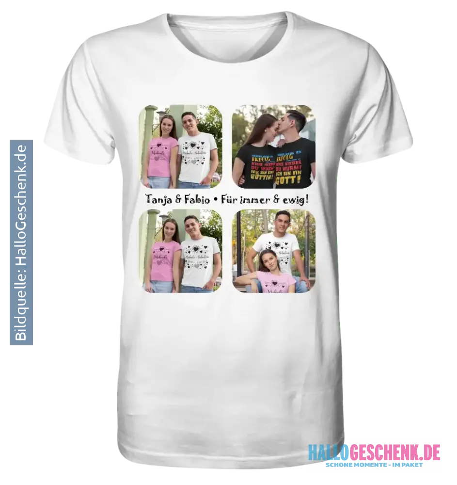 4 Fotos mit Text • Fotogeschenk • Unisex Premium T-Shirt XS-5XL aus Bio-Baumwolle für Damen & Herren • Exklusivdesign • personalisiert