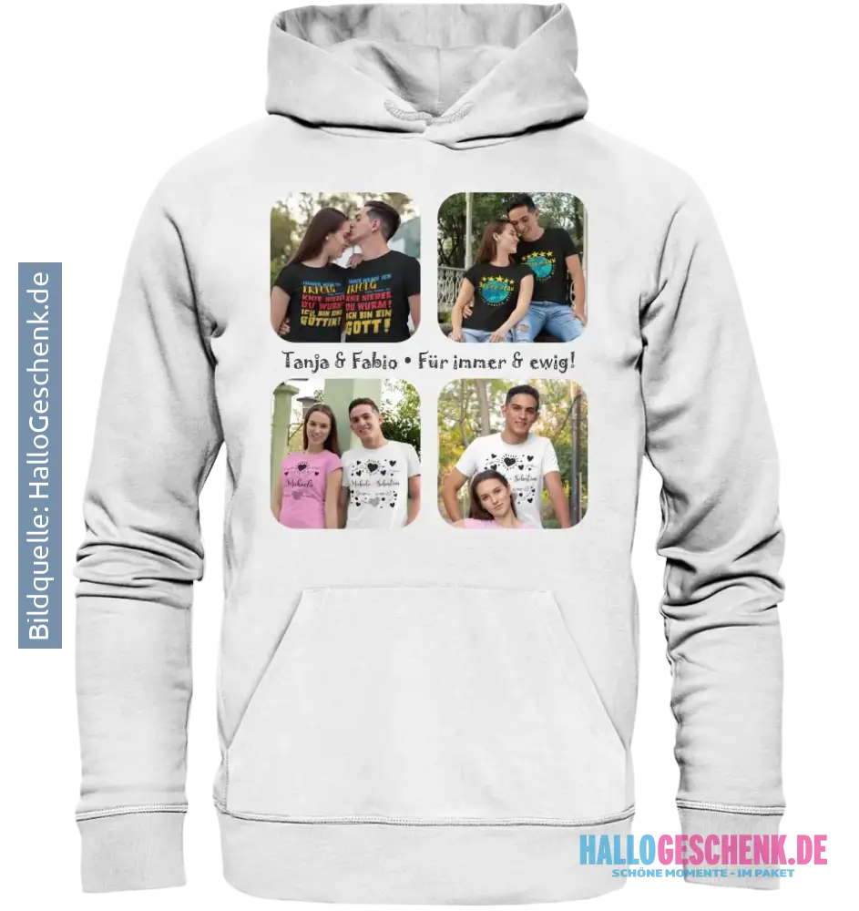 4 Fotos mit Text • Fotogeschenk • Unisex Premium Hoodie XS-5XL aus Bio-Baumwolle für Damen & Herren • Exklusivdesign • personalisiert