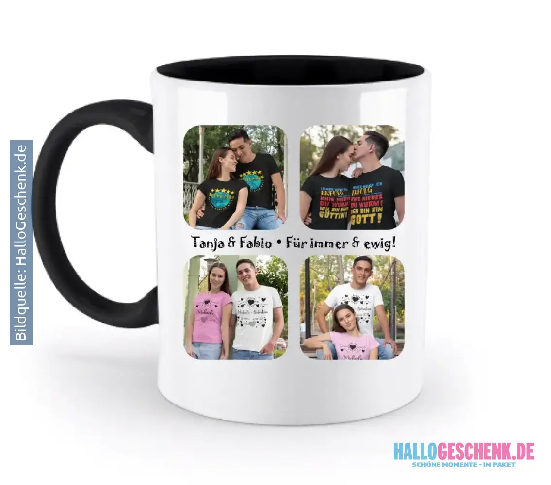 4 Fotos mit Text • Fotogeschenk • zweifarbige Tasse • Exklusivdesign • personalisiert