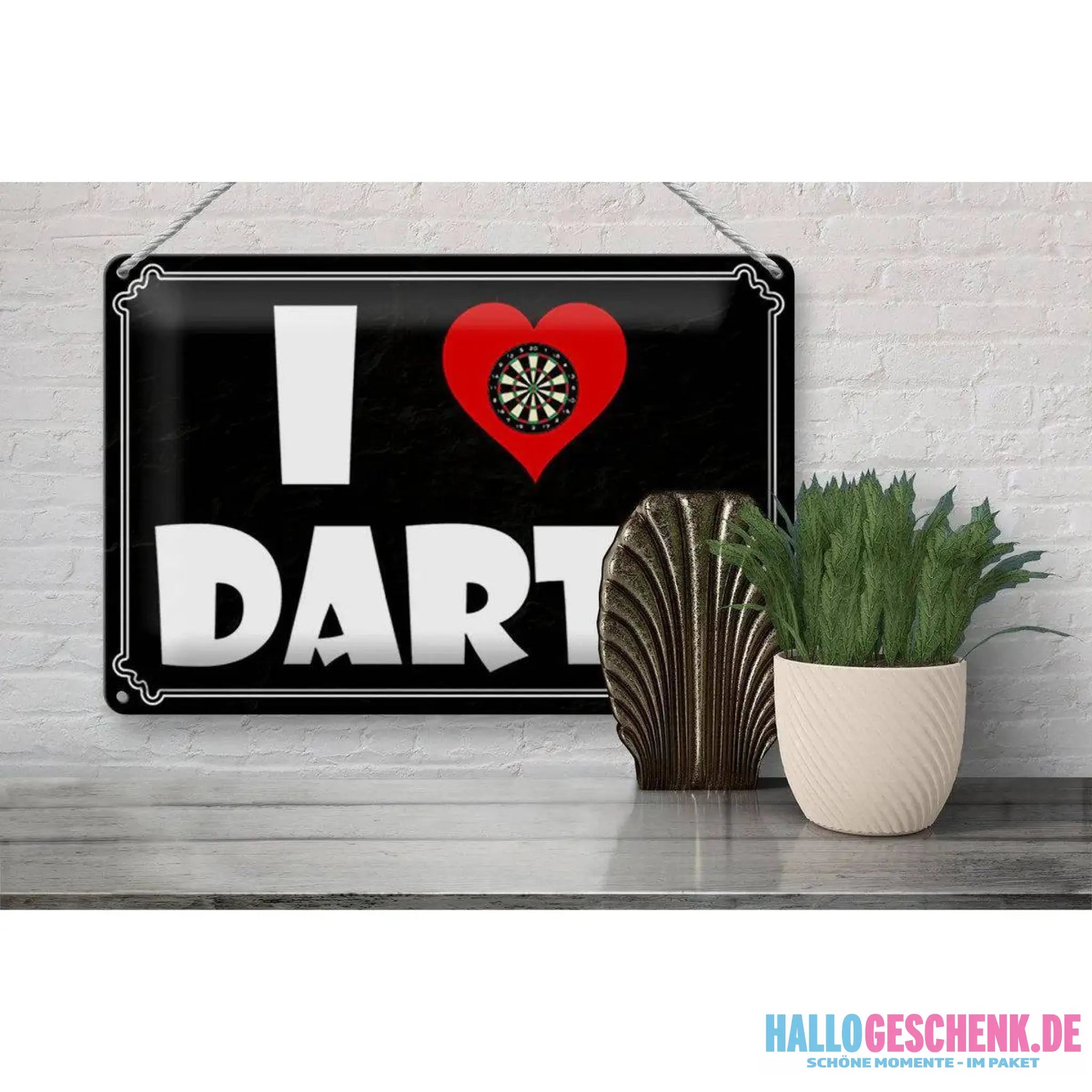 Metal sign saying 30x20cm I Love Darts wall decoration