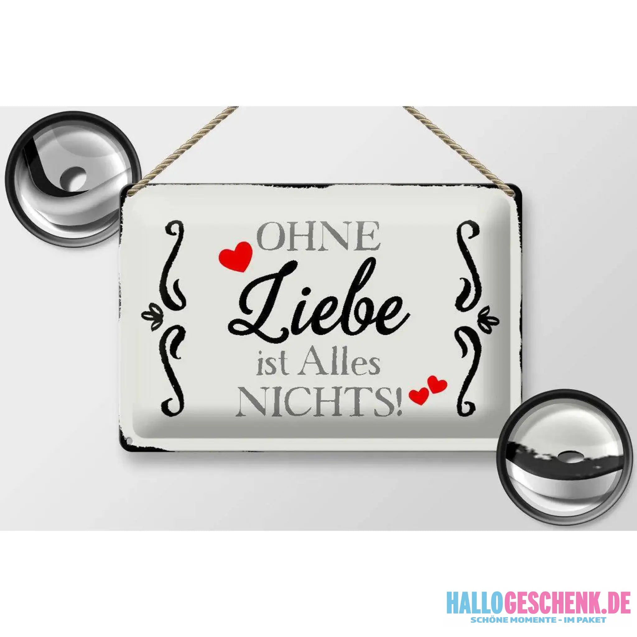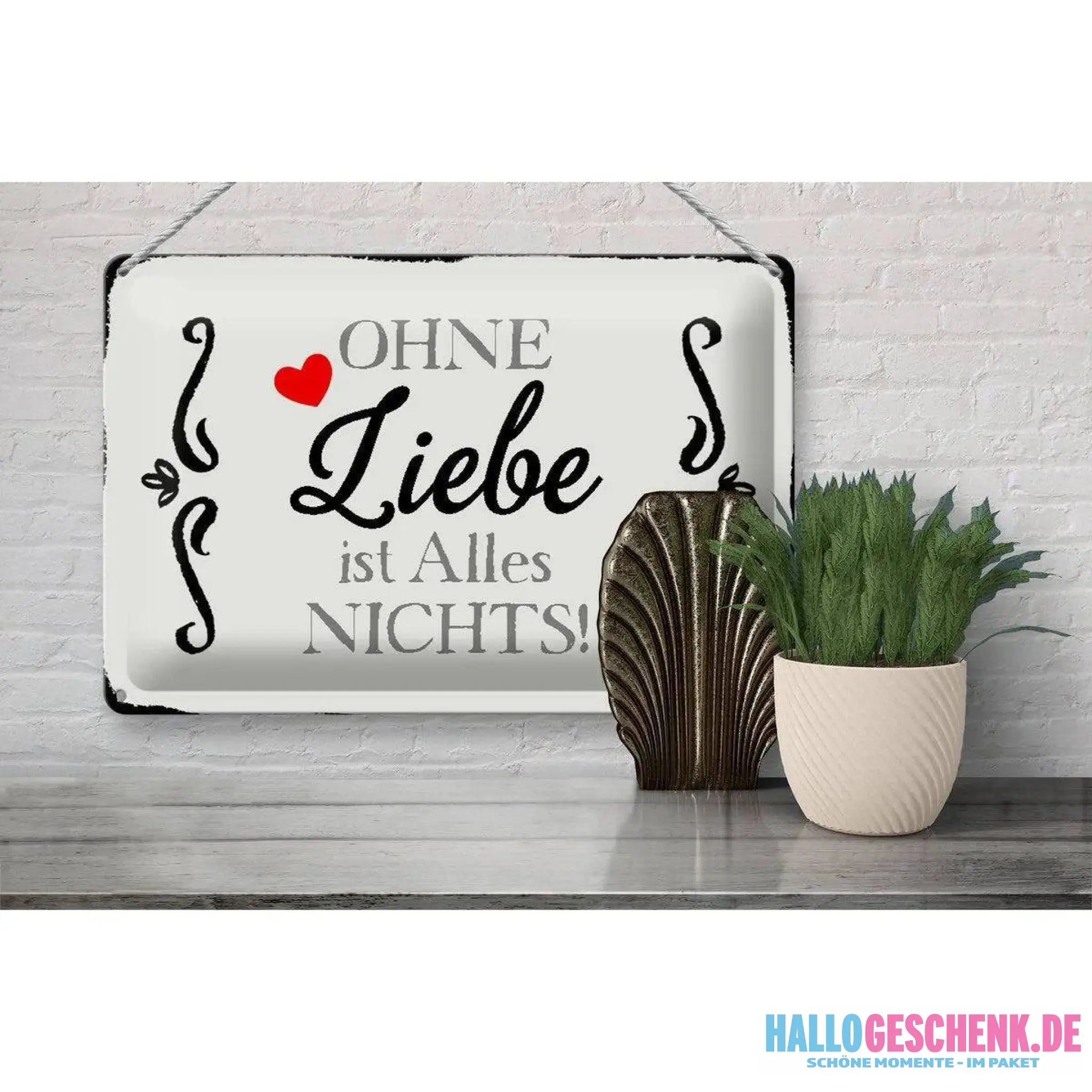 Tin sign saying 30x20cm Without love everything is nothing heart