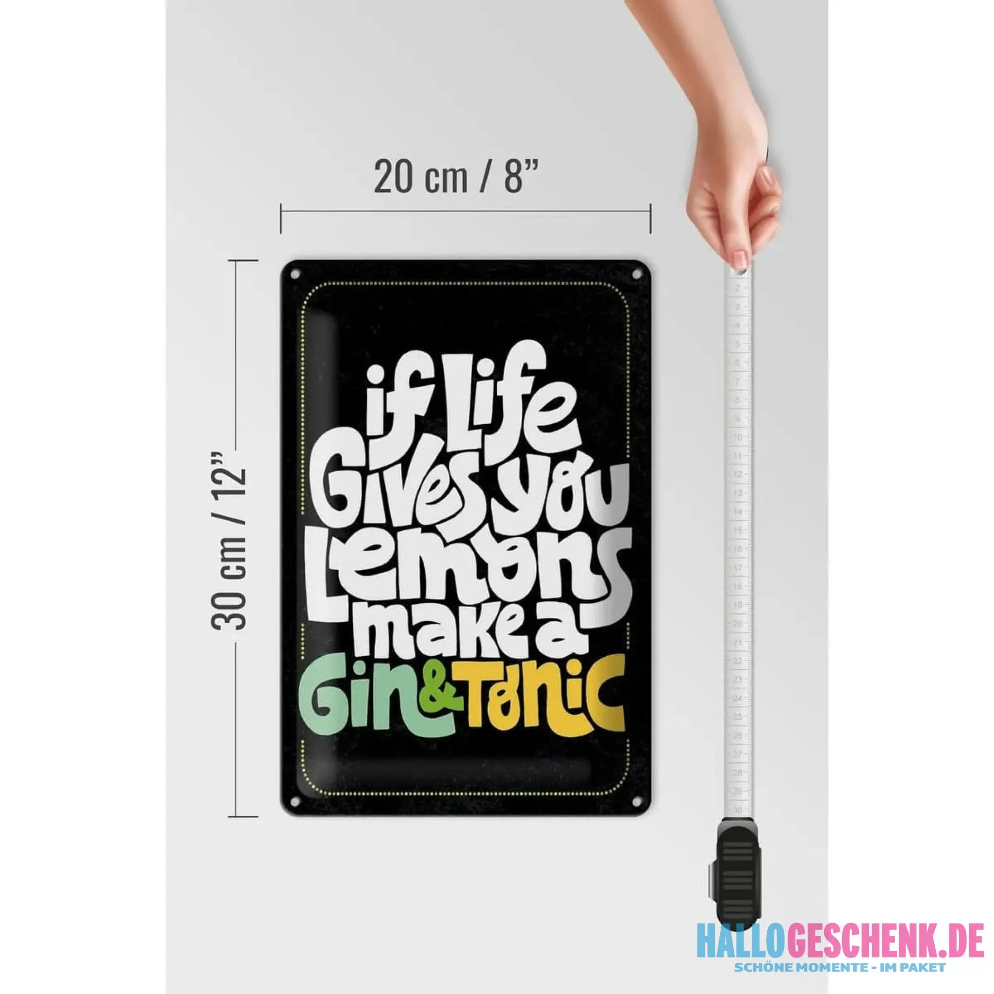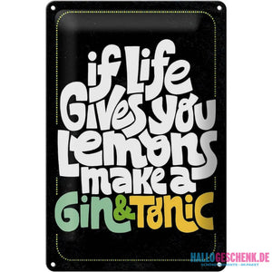 Tin sign saying Life gives Lemons make Gin & Tonic 20x30cm