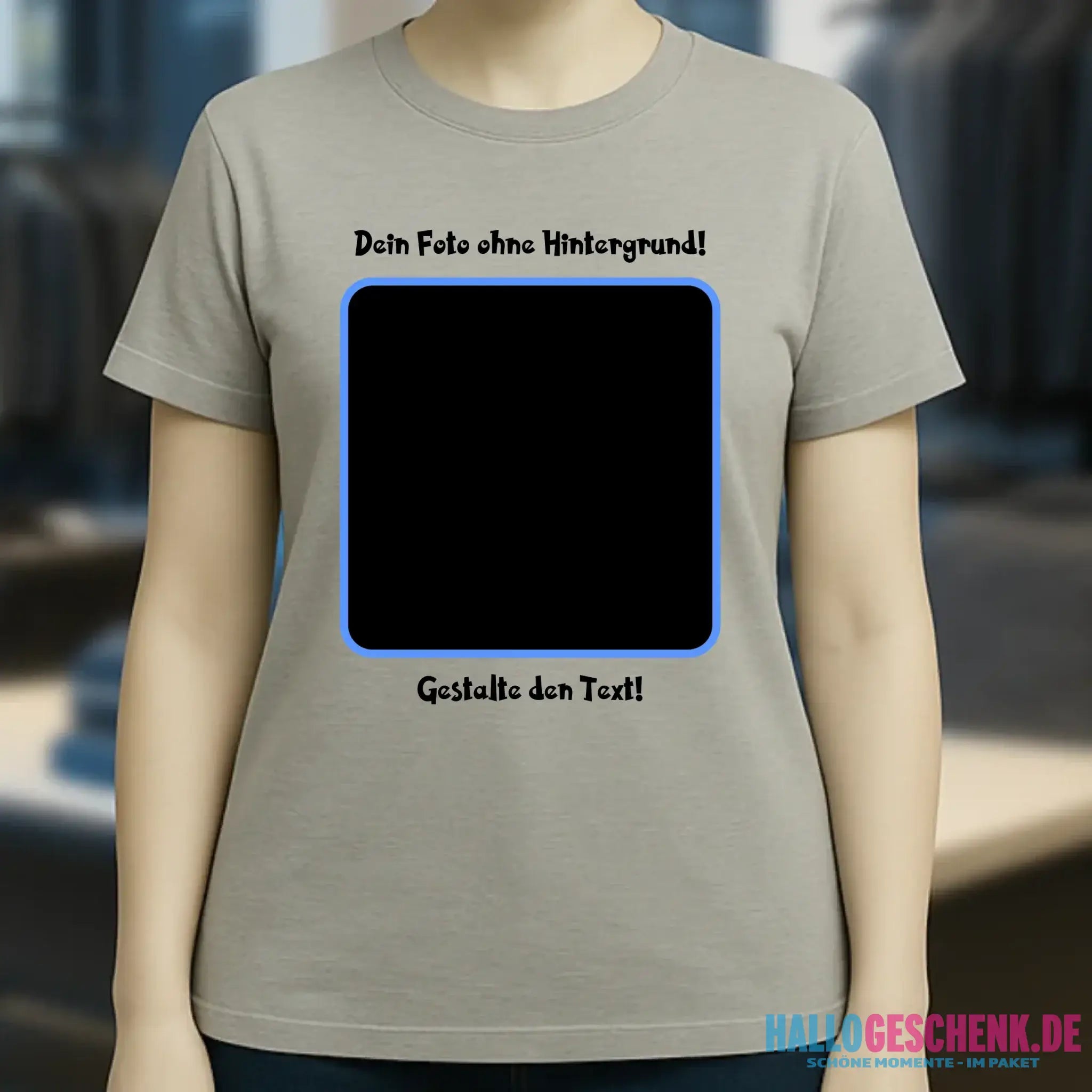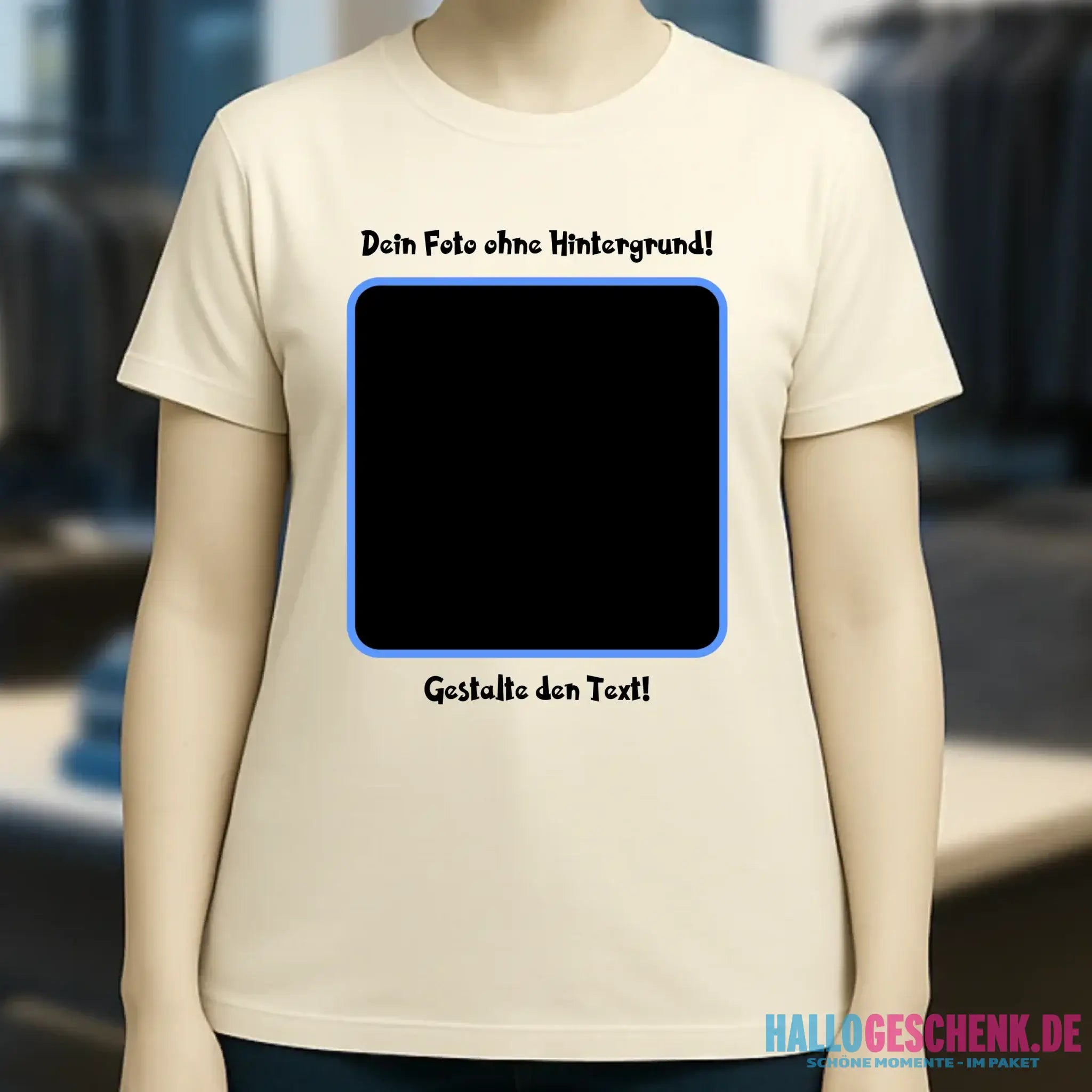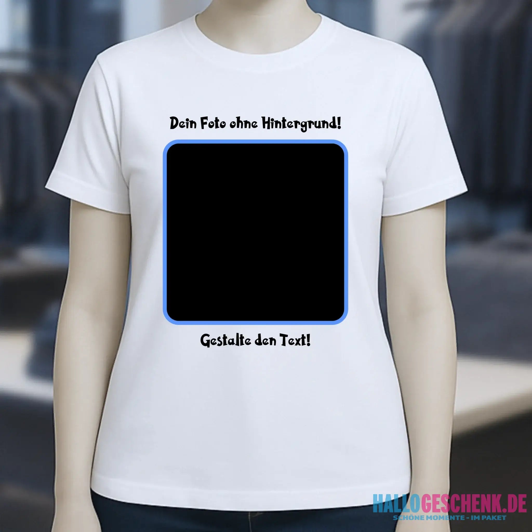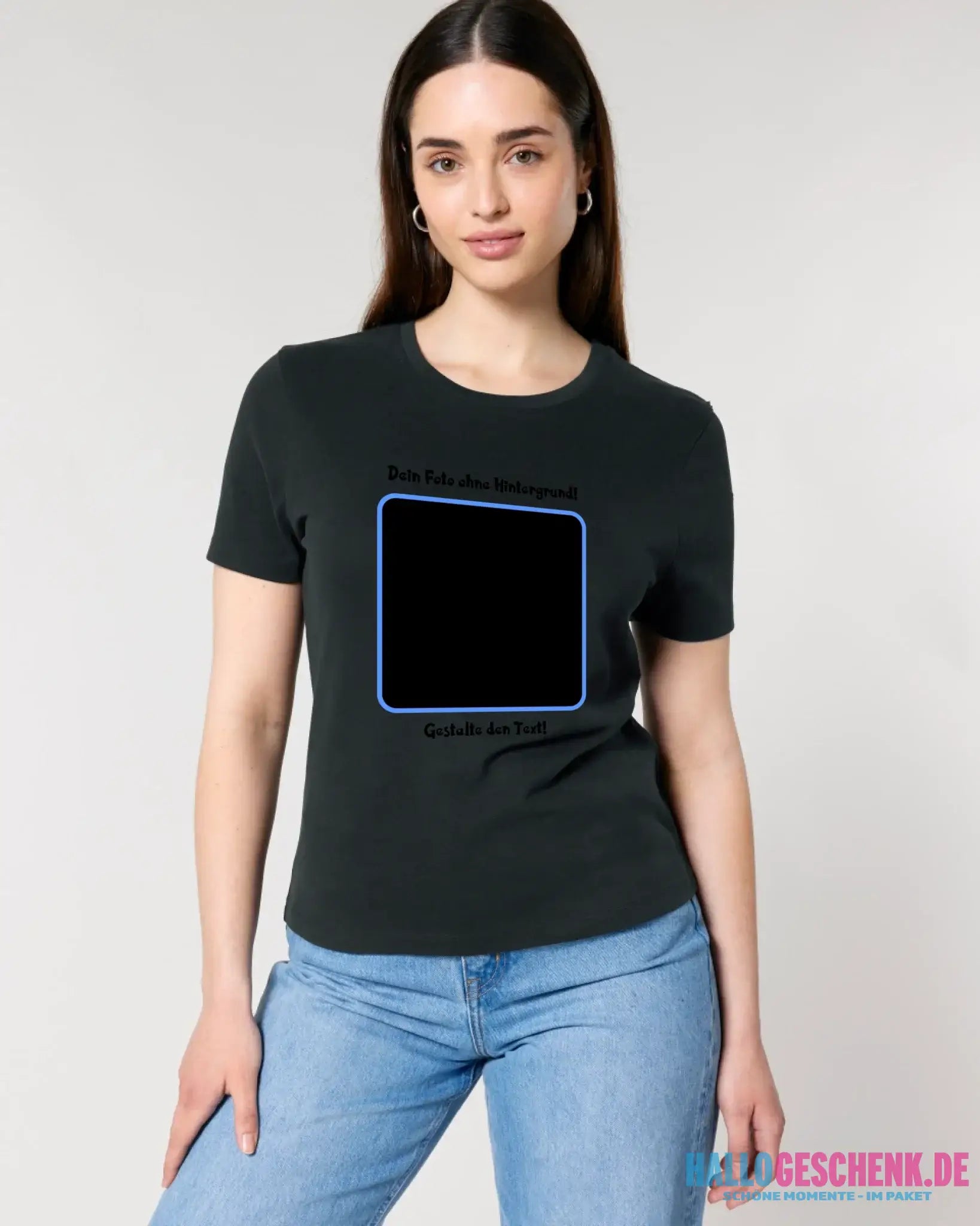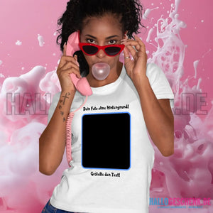 Dein FOTO mit Hintergrundentferner + Text + Hintergrund (optional) • Damen T-Shirt • Bio-Baumwolle • Premium-Qualität • MAGIC-KI-CUT TOOL