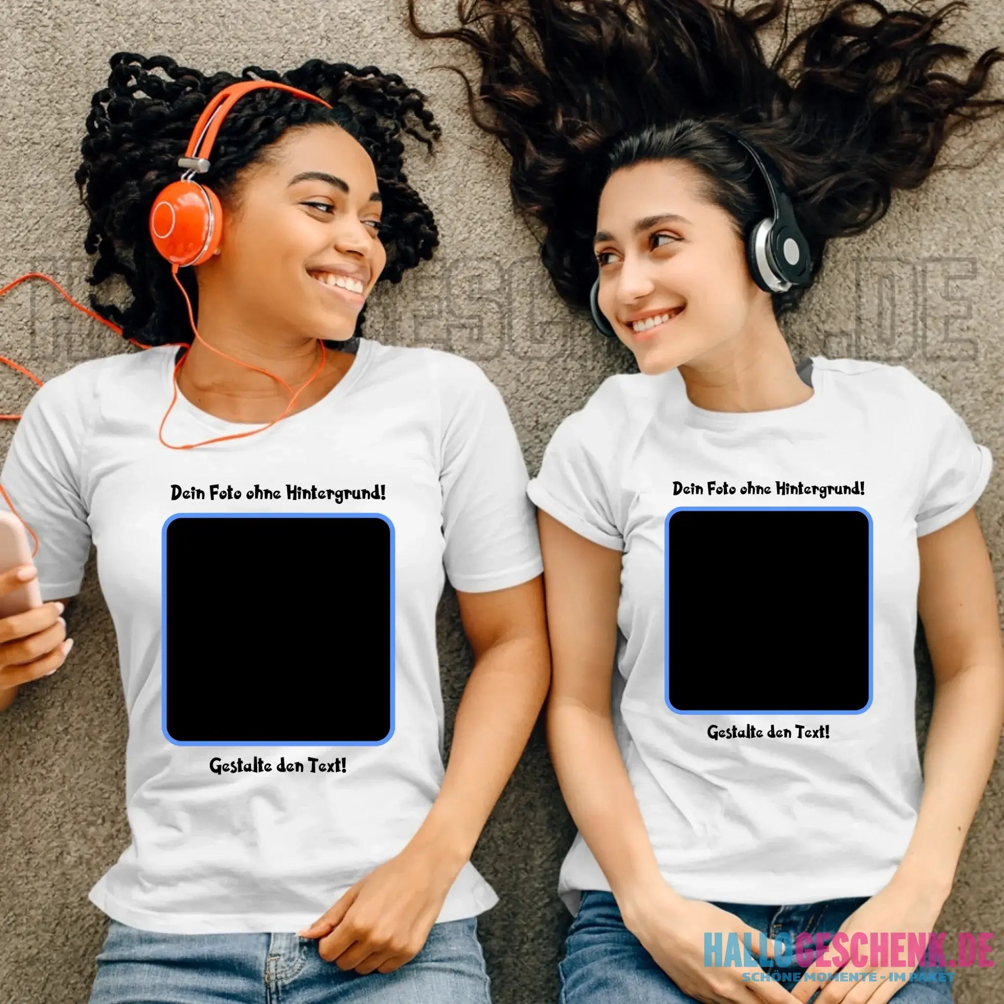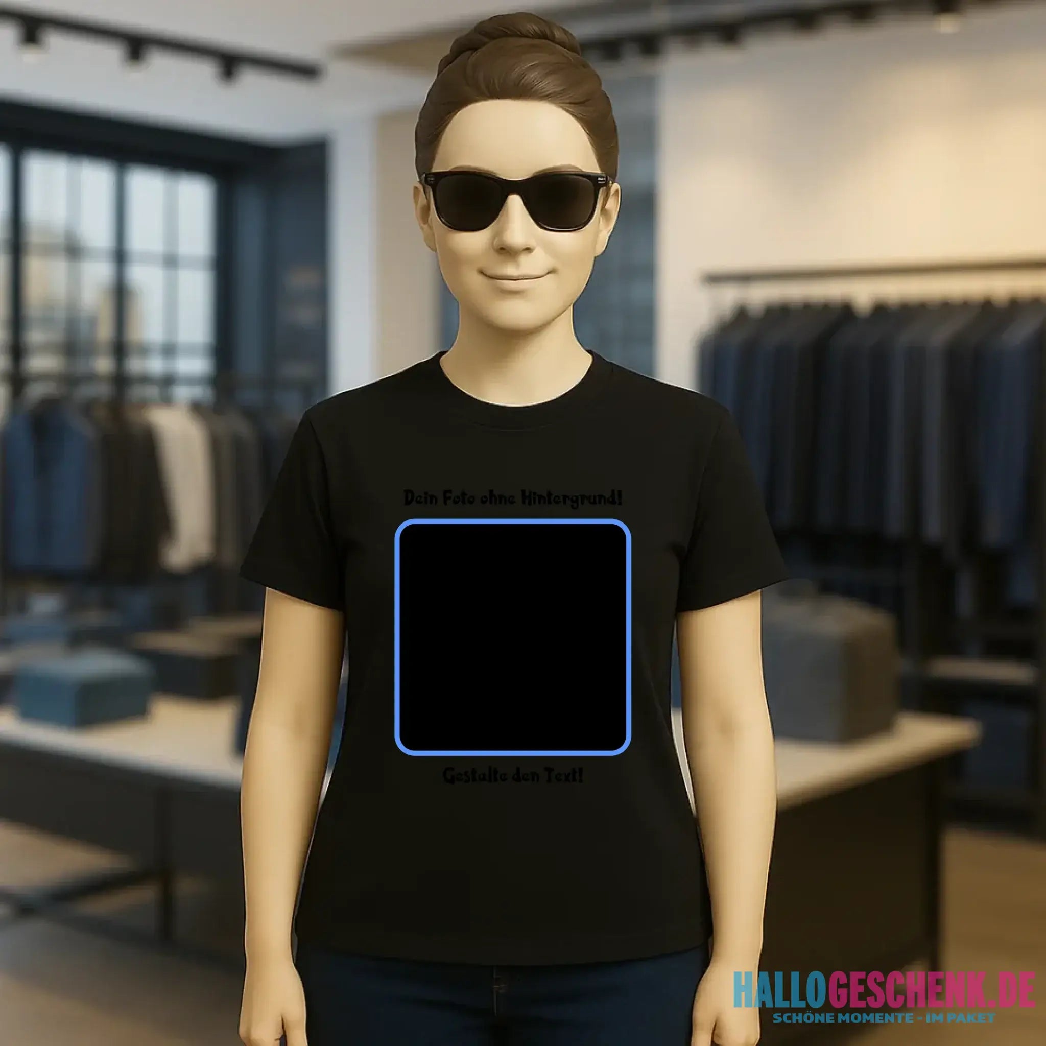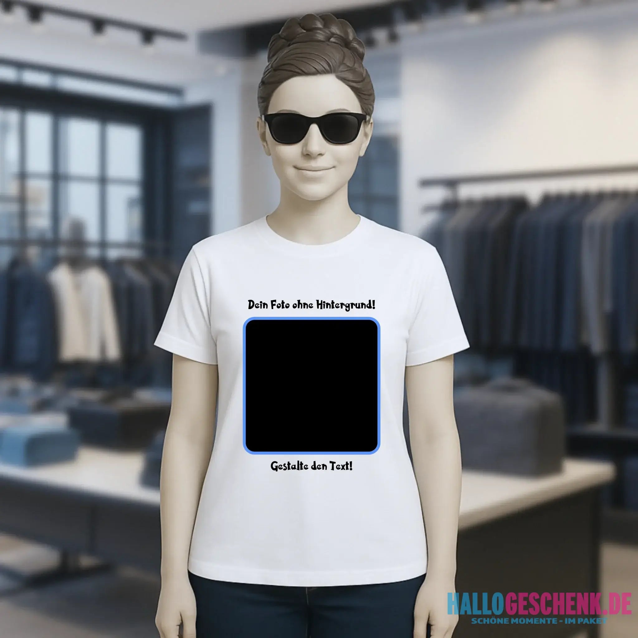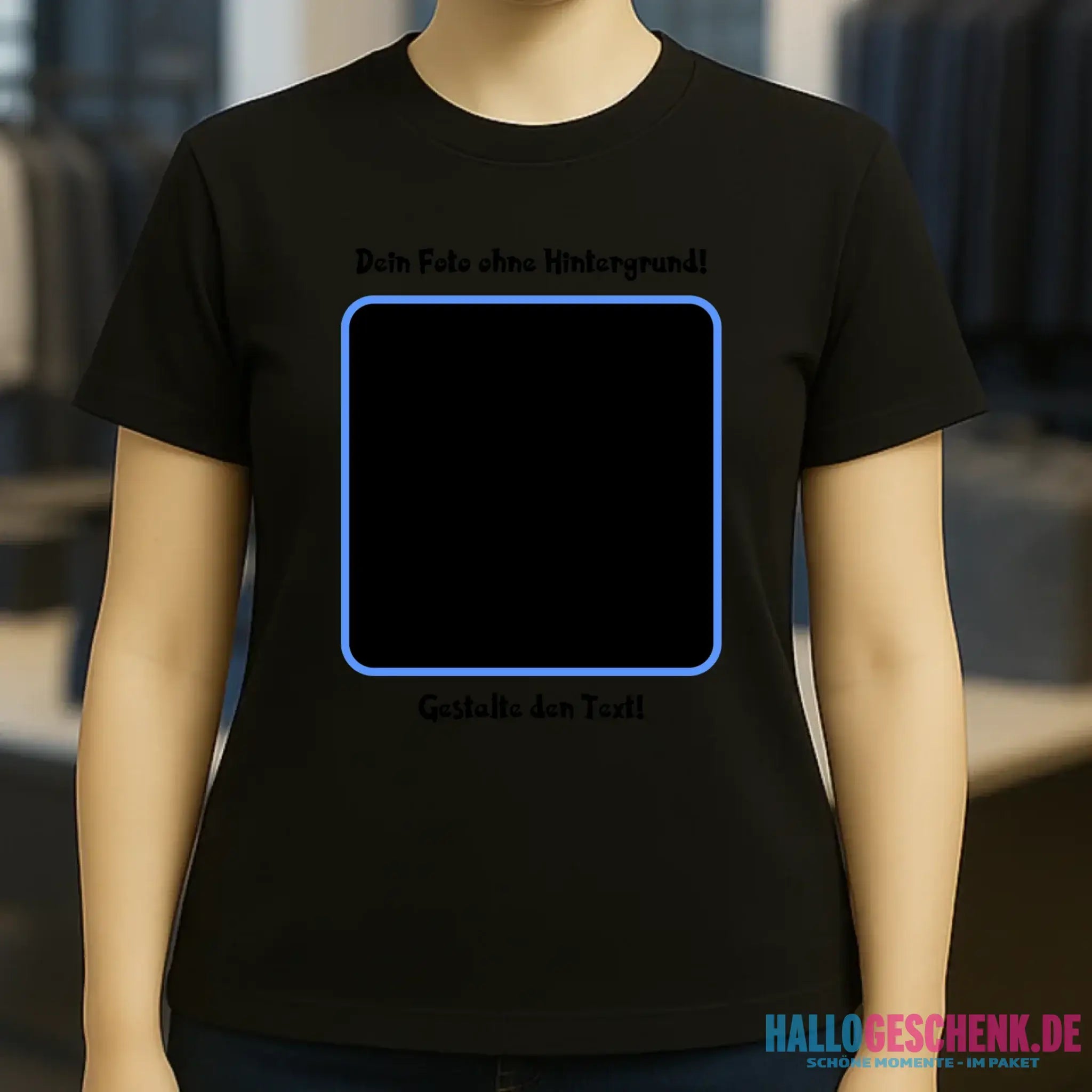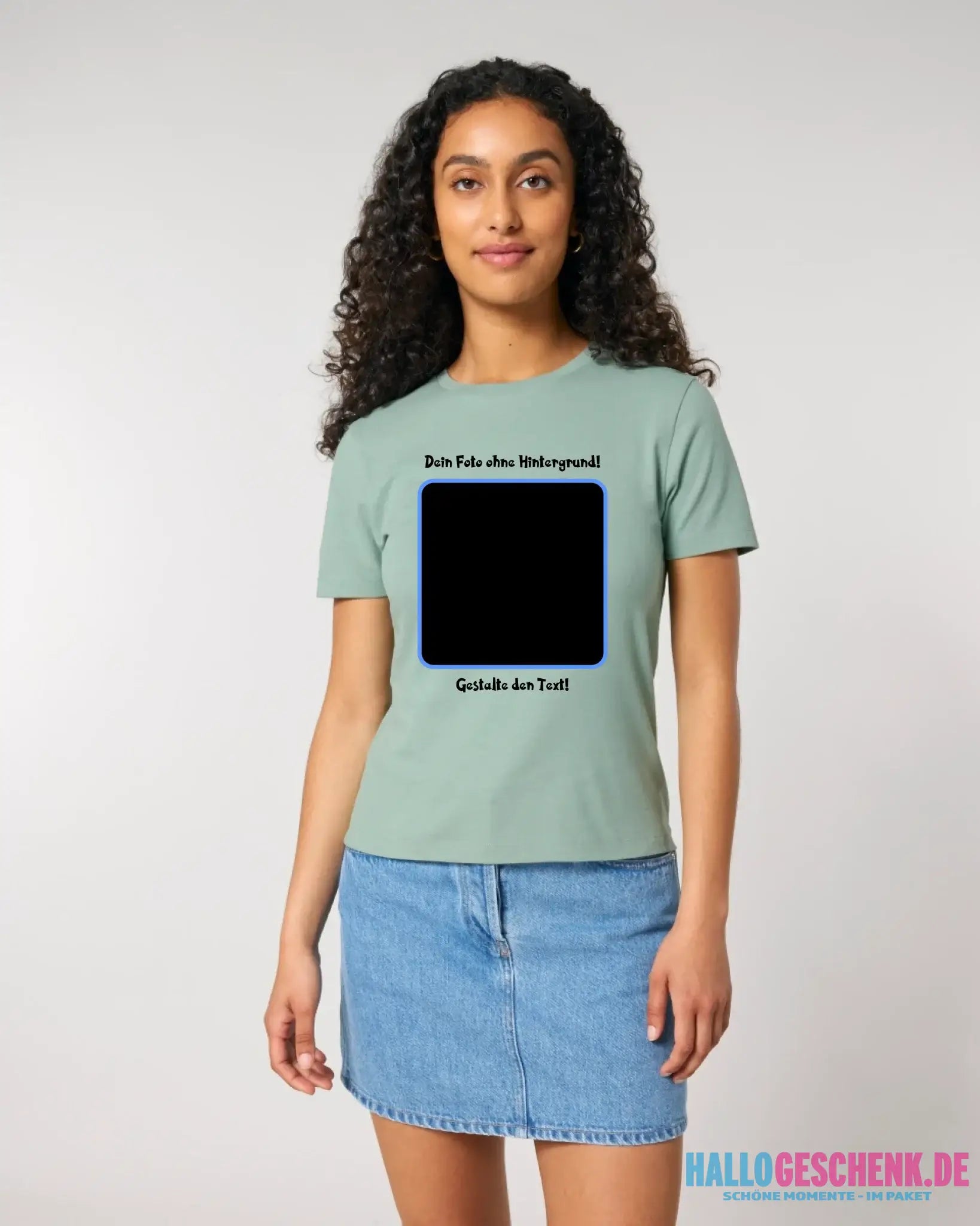 Dein FOTO mit Hintergrundentferner + Text + Hintergrund (optional) • Damen T-Shirt • Bio-Baumwolle • Premium-Qualität • MAGIC-KI-CUT TOOL