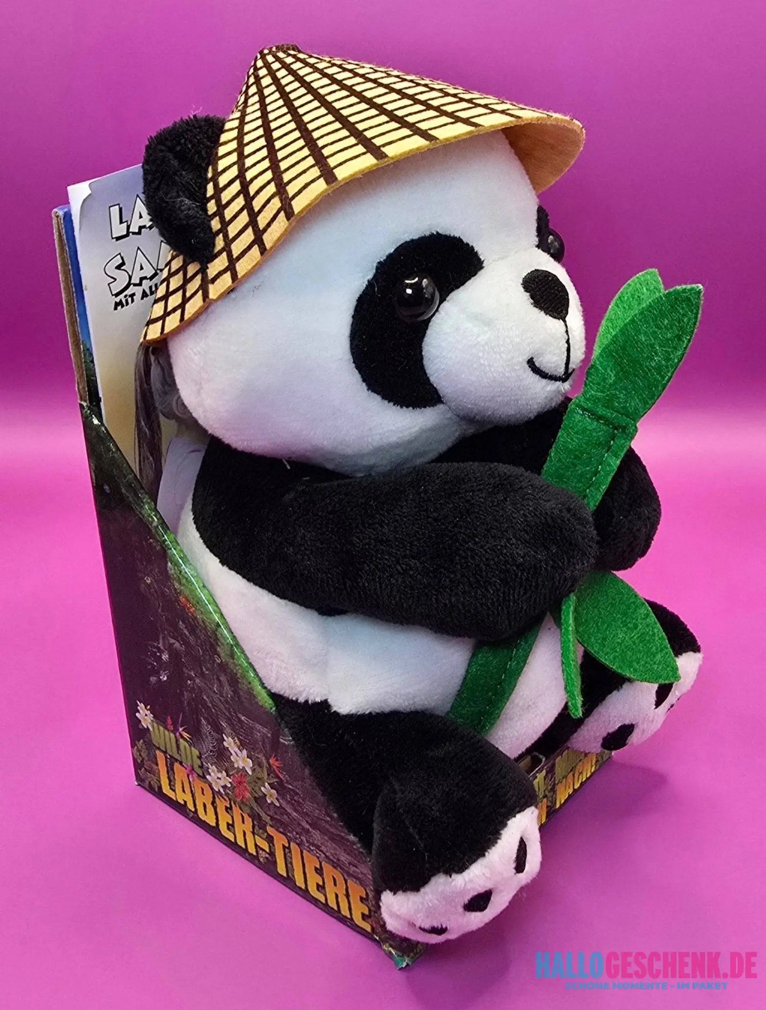 Funny chattering panda BAO BAO, who repeats everything • Incl. hat and bamboo • 14.5x12x18 cm • Chattering animals