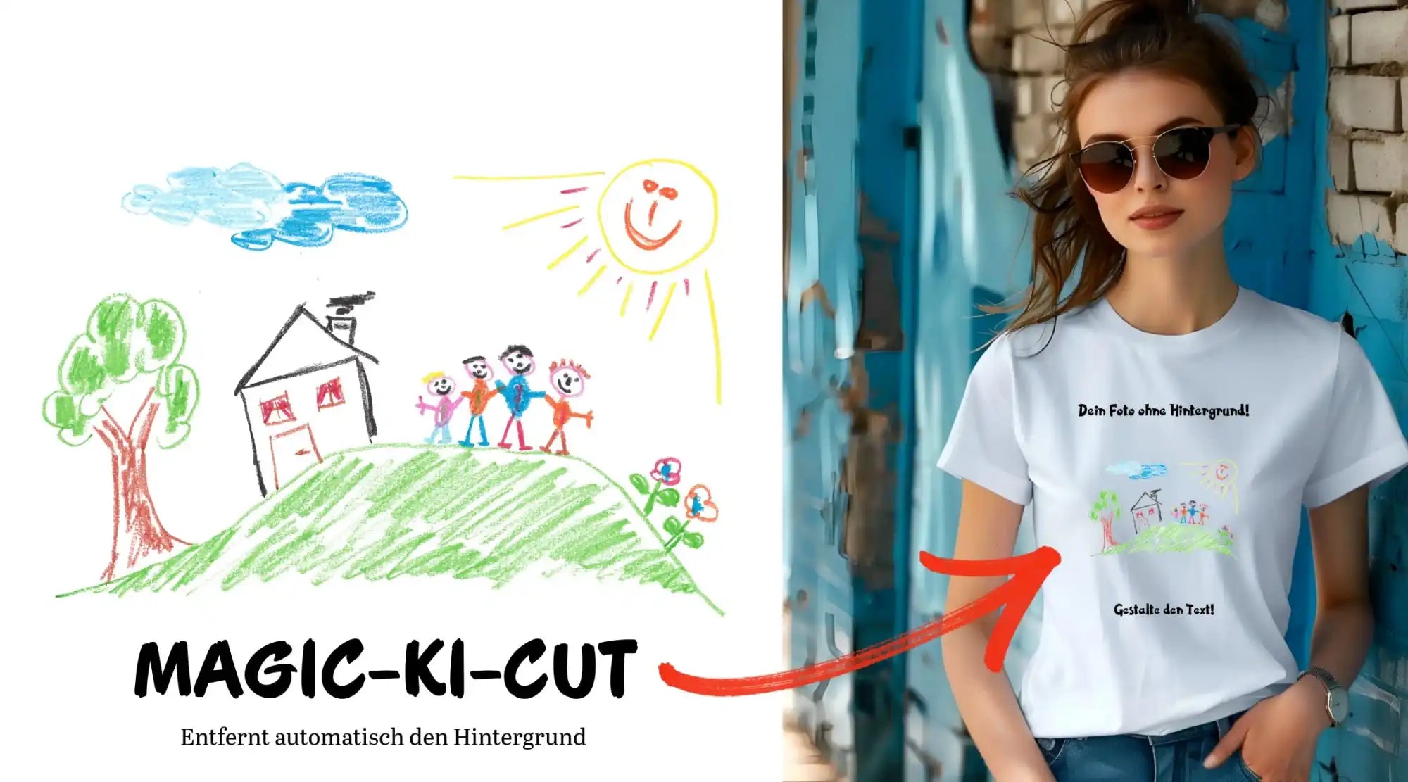 Mit unserem MAGIC-CUT-TOOL - zu finden unter personalisierte Fotogeschenke - kannst du das Bild deines Kindes einfach auf ein Produkt deiner Wahl hochladen...dabei entfernen wir automatisch den Hintergrund, sodass du das Bild auf ein T-Shirt, eine Tasse, ein Kissen und vieles mehr aufdrucken lassen kannst.