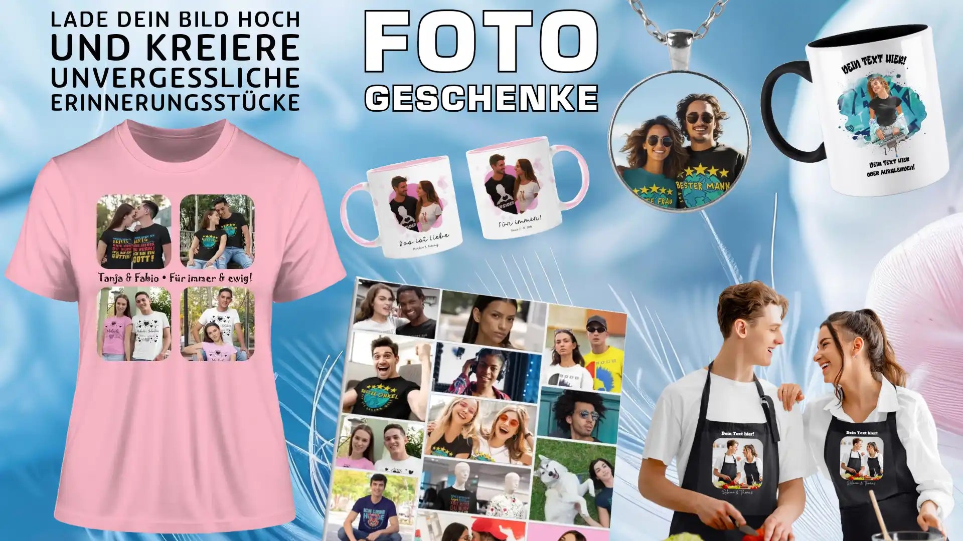 Gestalte diverse Artikel mit deinem eigenen Foto und ergänze sie auf Wunsch mit Texten oder passenden Hintergründen – so entstehen ganz persönliche Erinnerungsstücke.