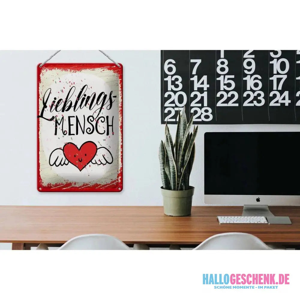 Blechschild Spruch Lieblingsmensch Herz Engel 20x30cm