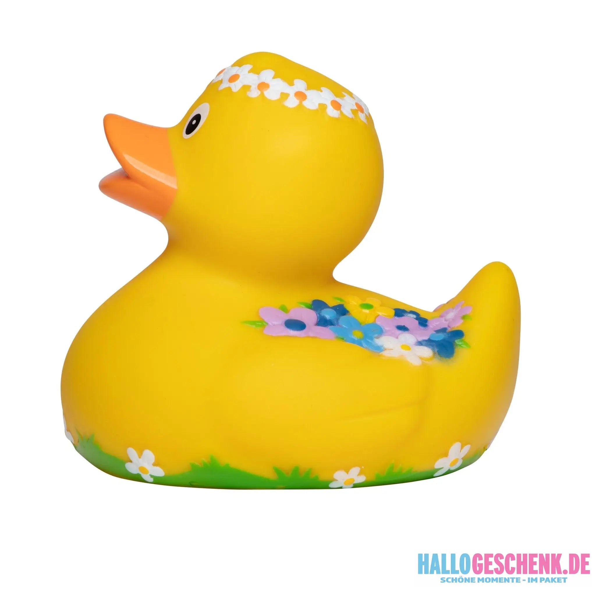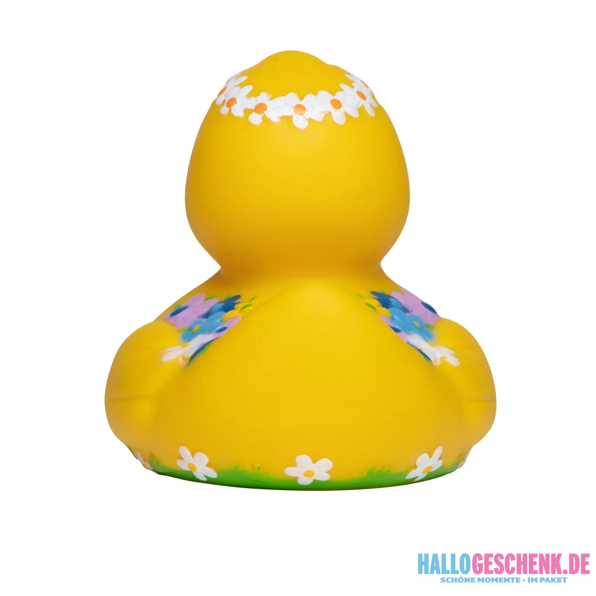 Quietsche-Ente mit Blumenkranz und Blütenzauber