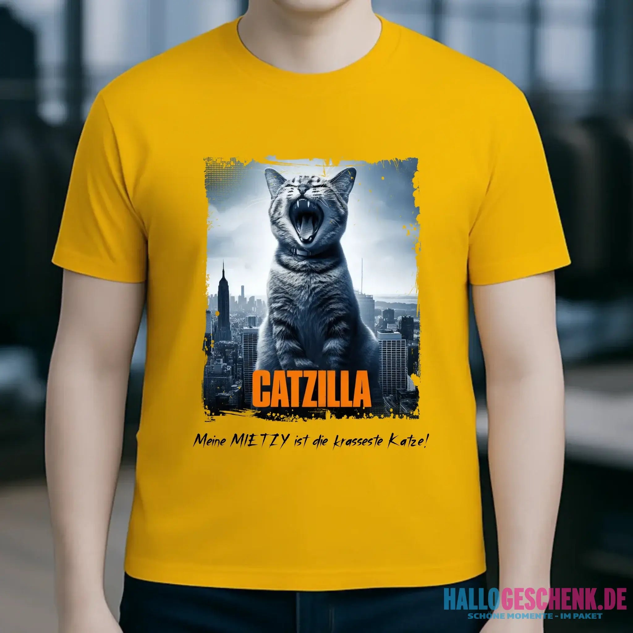 Catzilla • Katze • Unisex Premium T-Shirt XS-5XL aus Bio-Baumwolle für Damen & Herren • Exklusivdesign • personalisiert