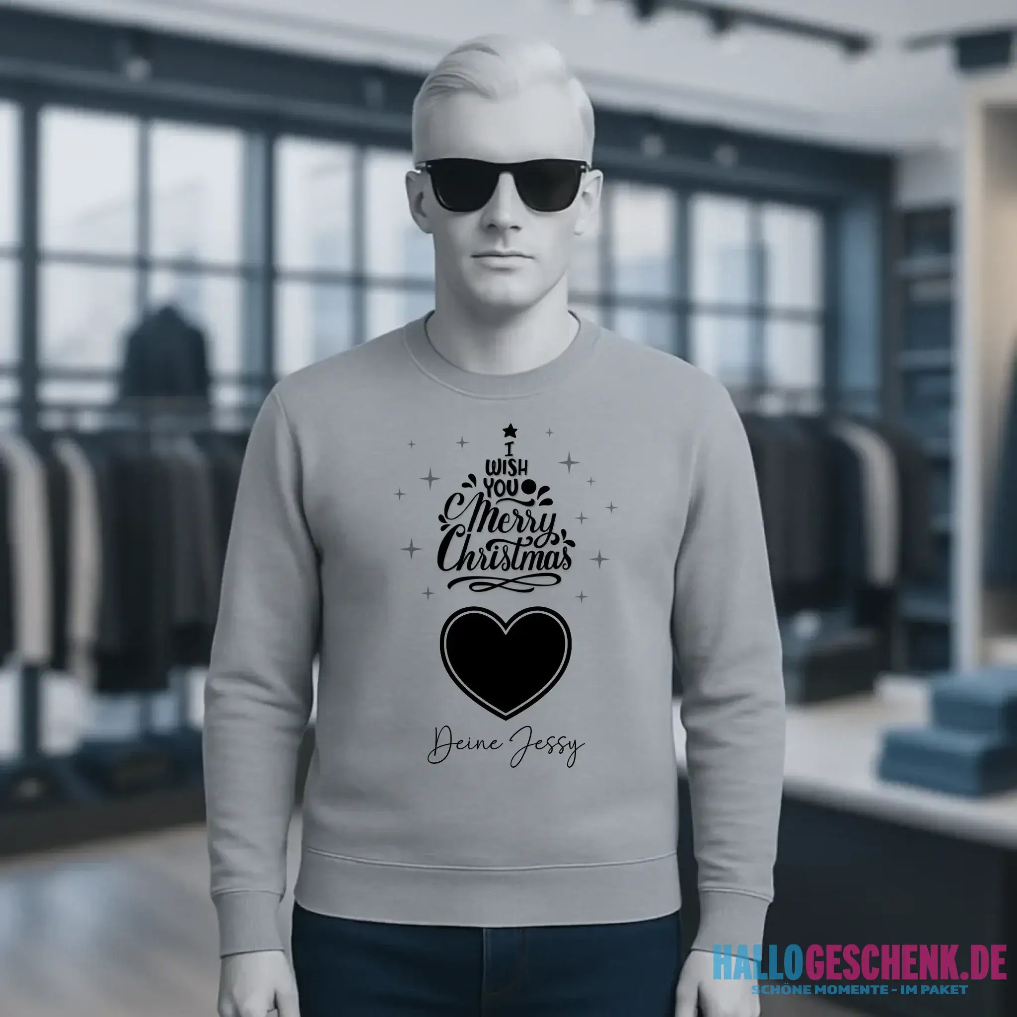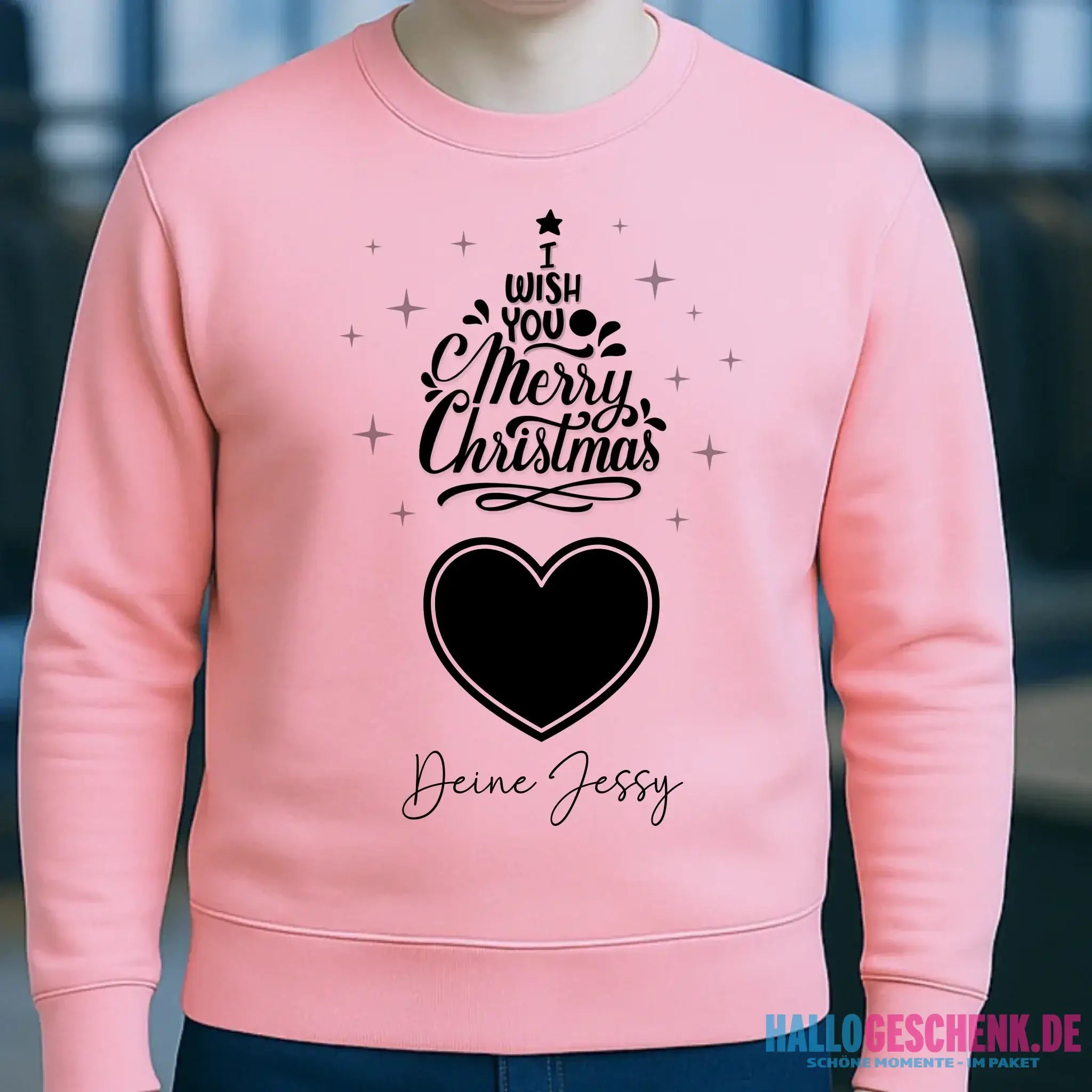 Dein Bild im Merry Christmas Tree + Name für Weihnachten • Unisex Sweatshirt Bio-Baumwolle in 4 Farben XS-3XL • personalisiert