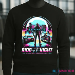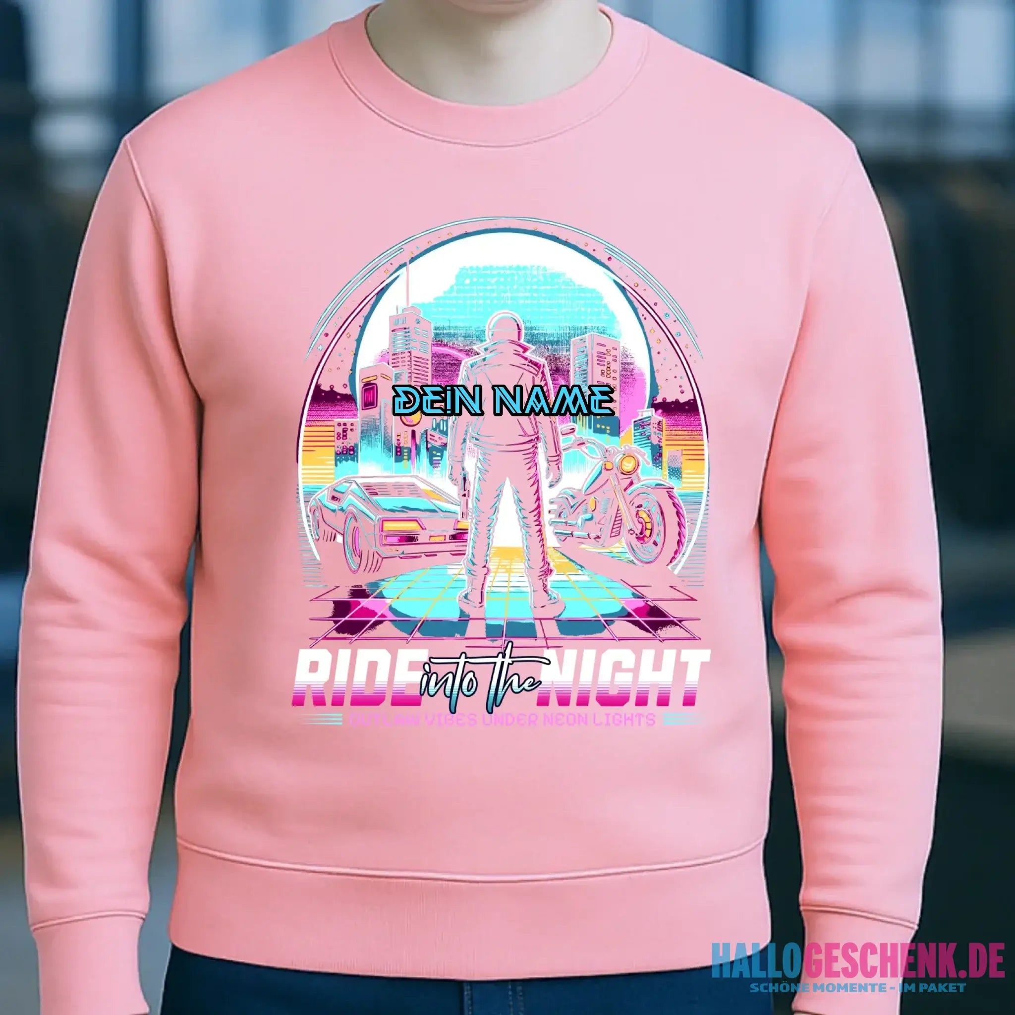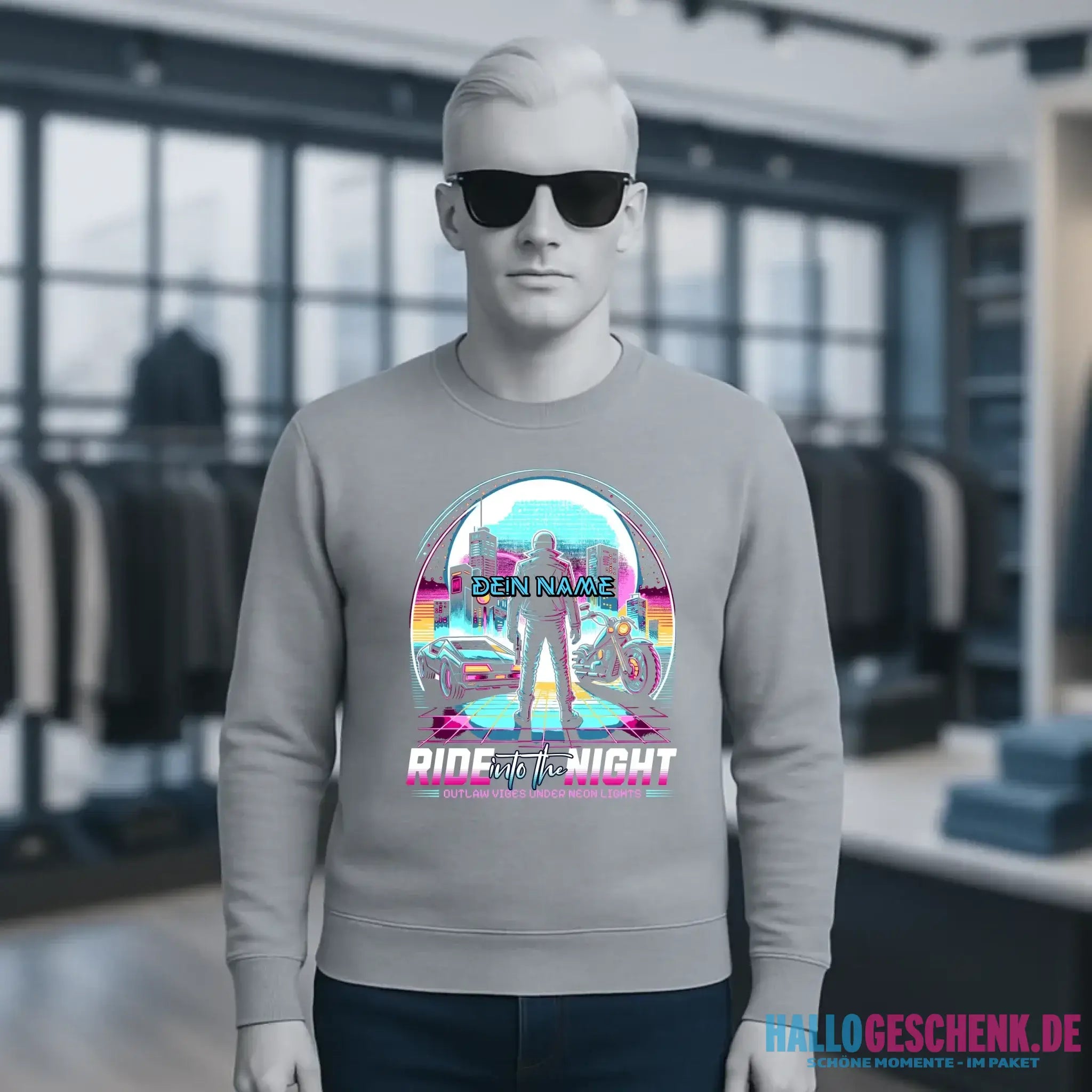 Dein Name • Ride into the night • Retro • 80s • Cyberpunk • Unisex Sweatshirt Bio-Baumwolle in 4 Farben XS-3XL • personalisiert