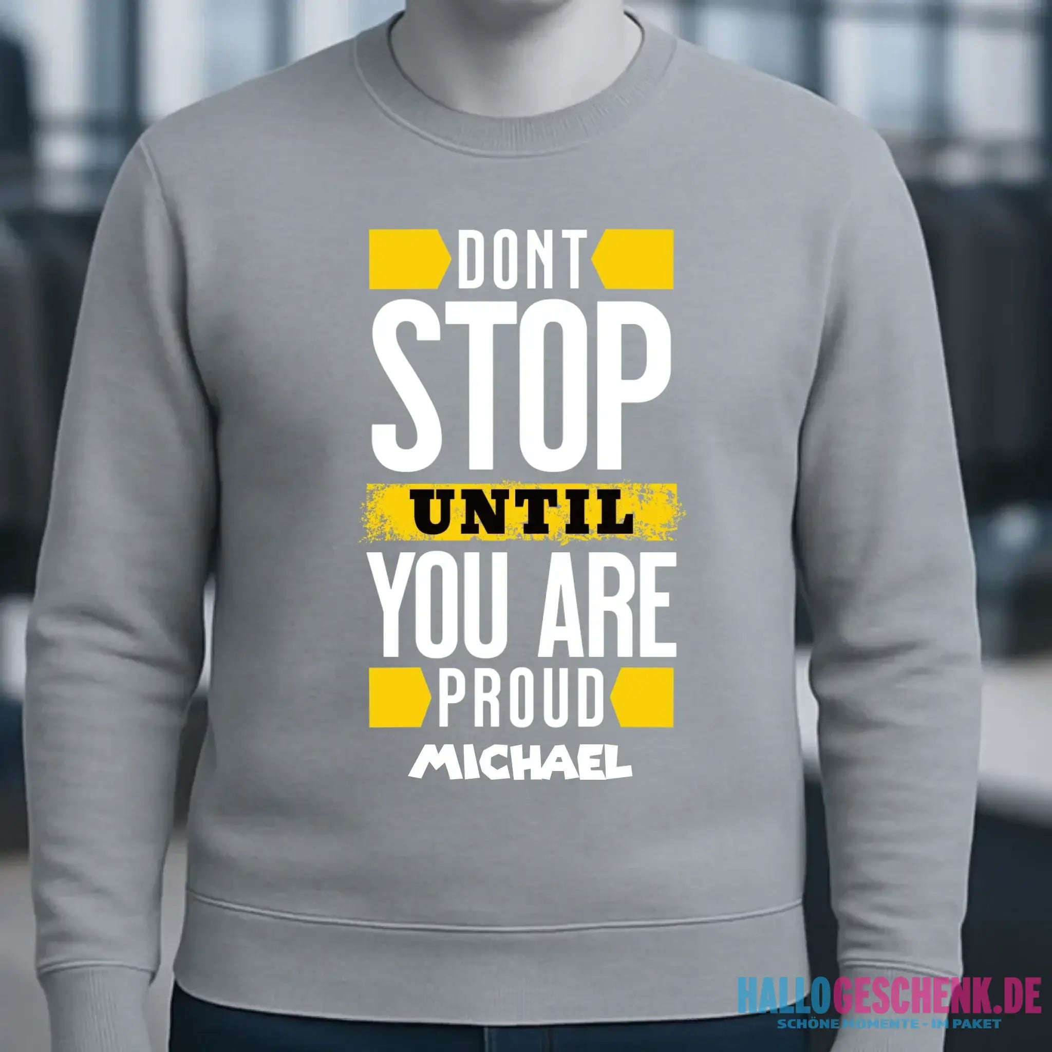 Don´t stop until you proud + dein Text • Unisex Sweatshirt Bio-Baumwolle in 4 Farben XS-3XL • personalisiert