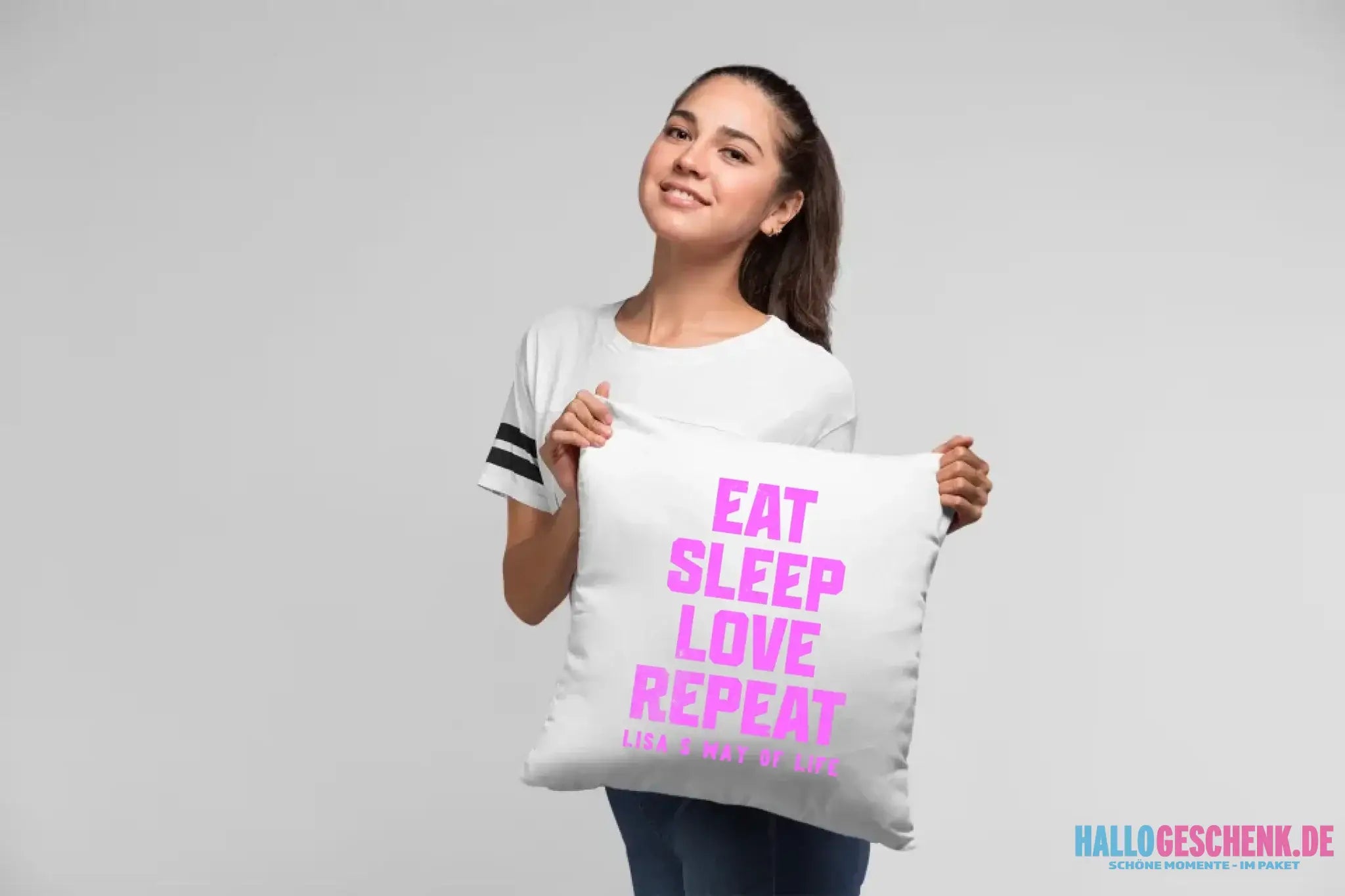 EAT SLEEP LOVE REPEAT + WUNSCHTEXT • Kissen 40x40 cm • personalisiert