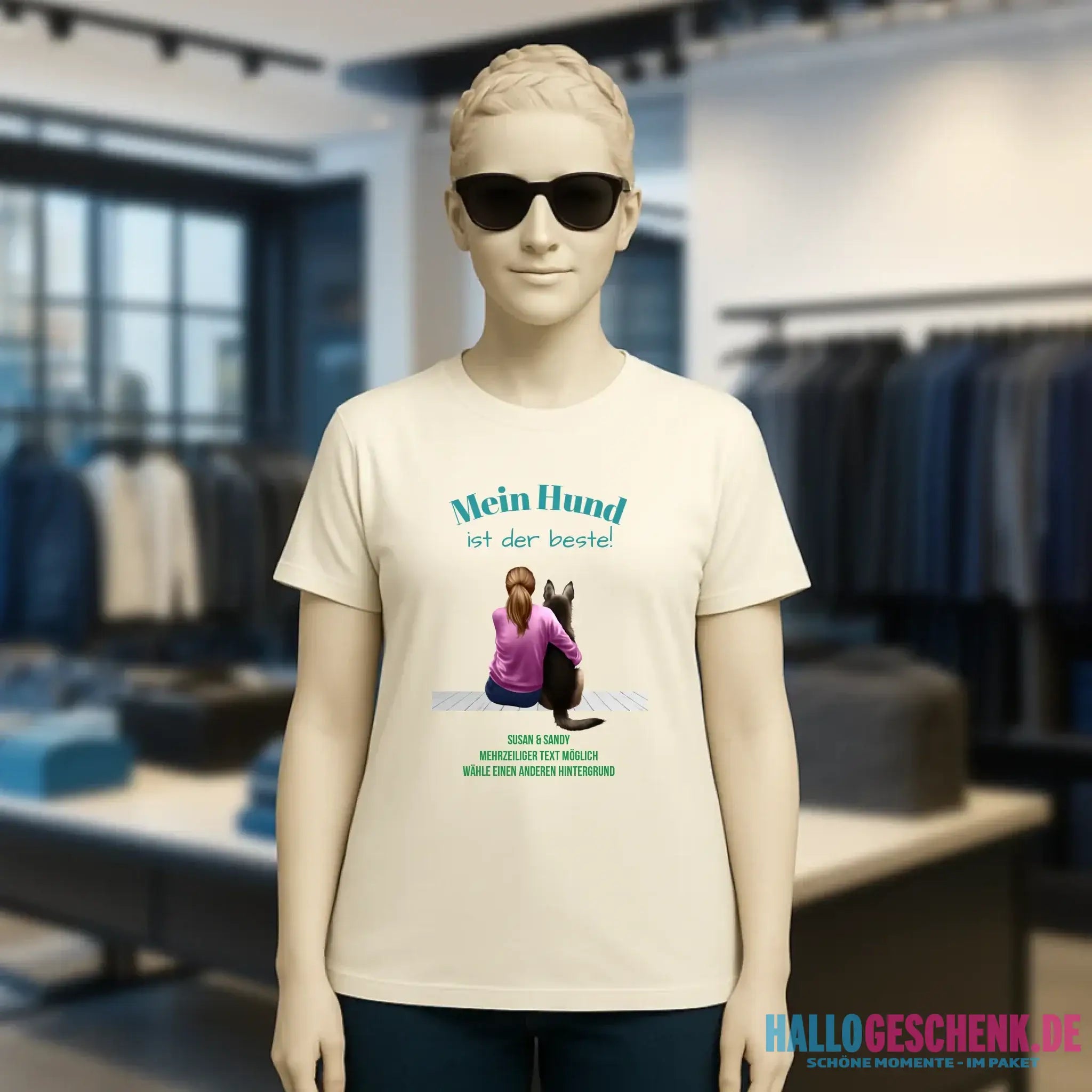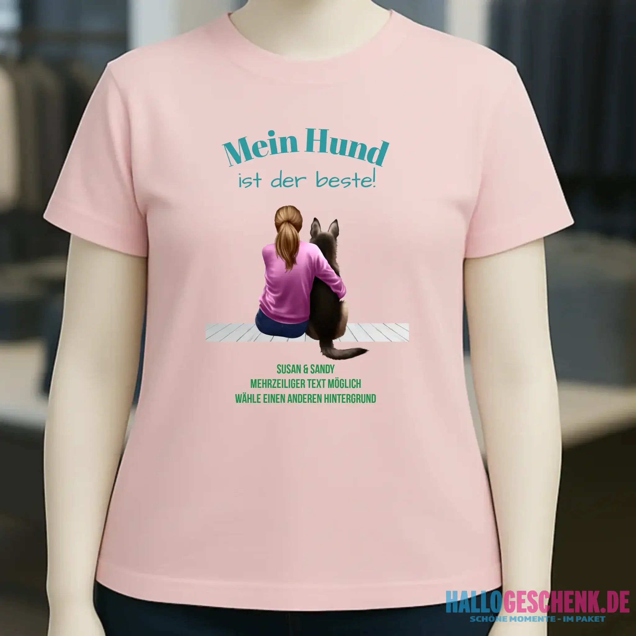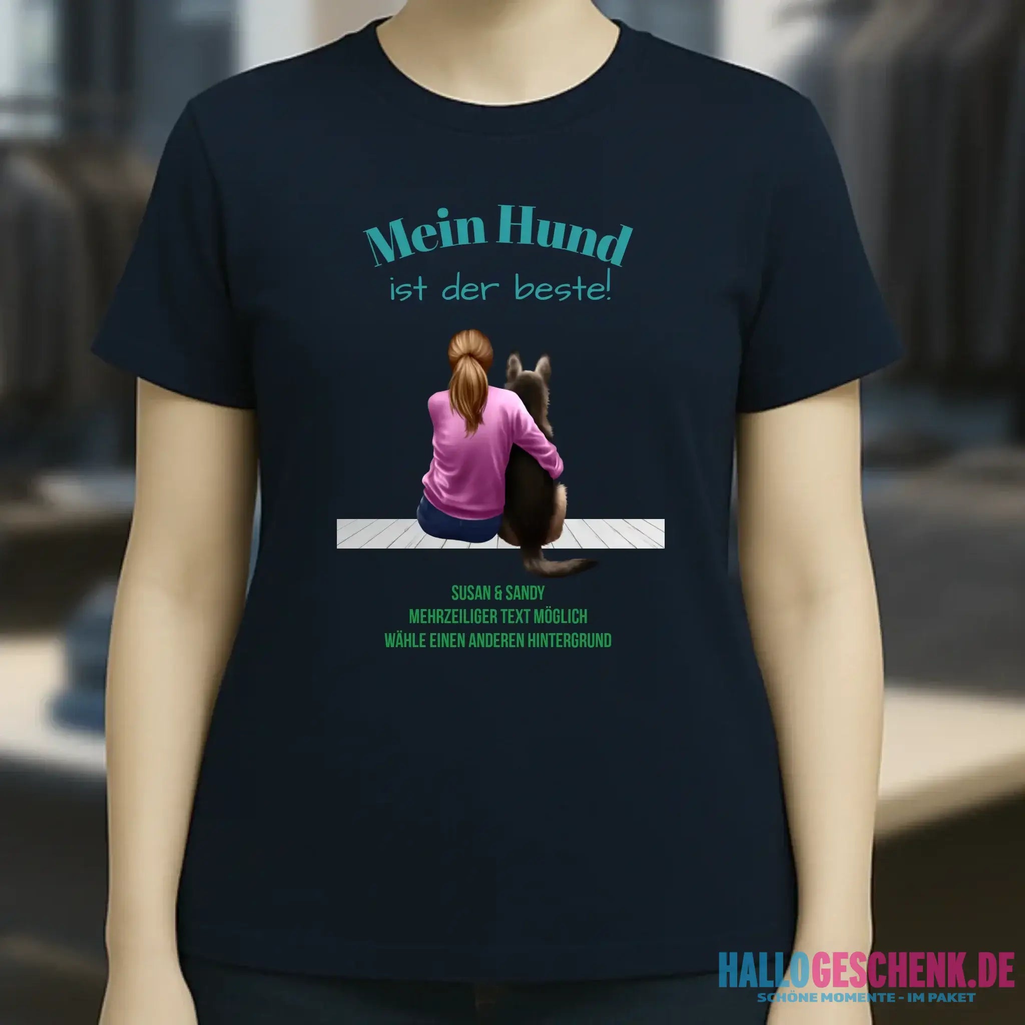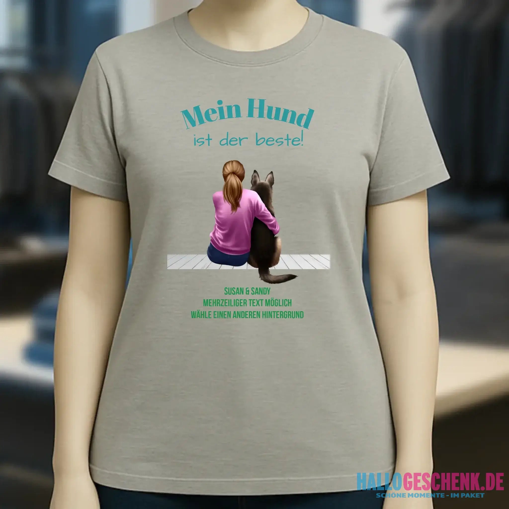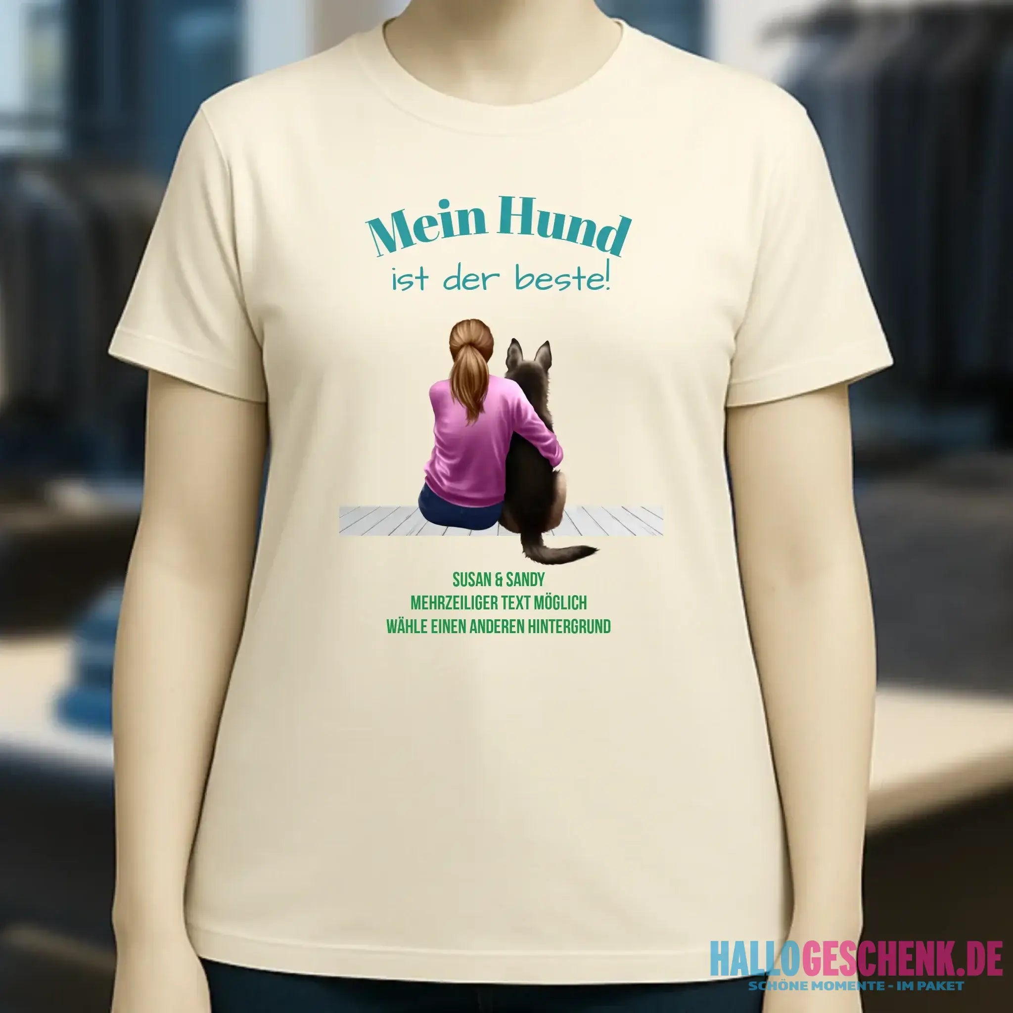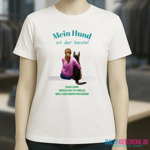 Frau mit Retriever oder Schäferhund, (personalisierbar) - Ladies Premium T-Shirt XS-2XL aus Bio-Baumwolle für Damen