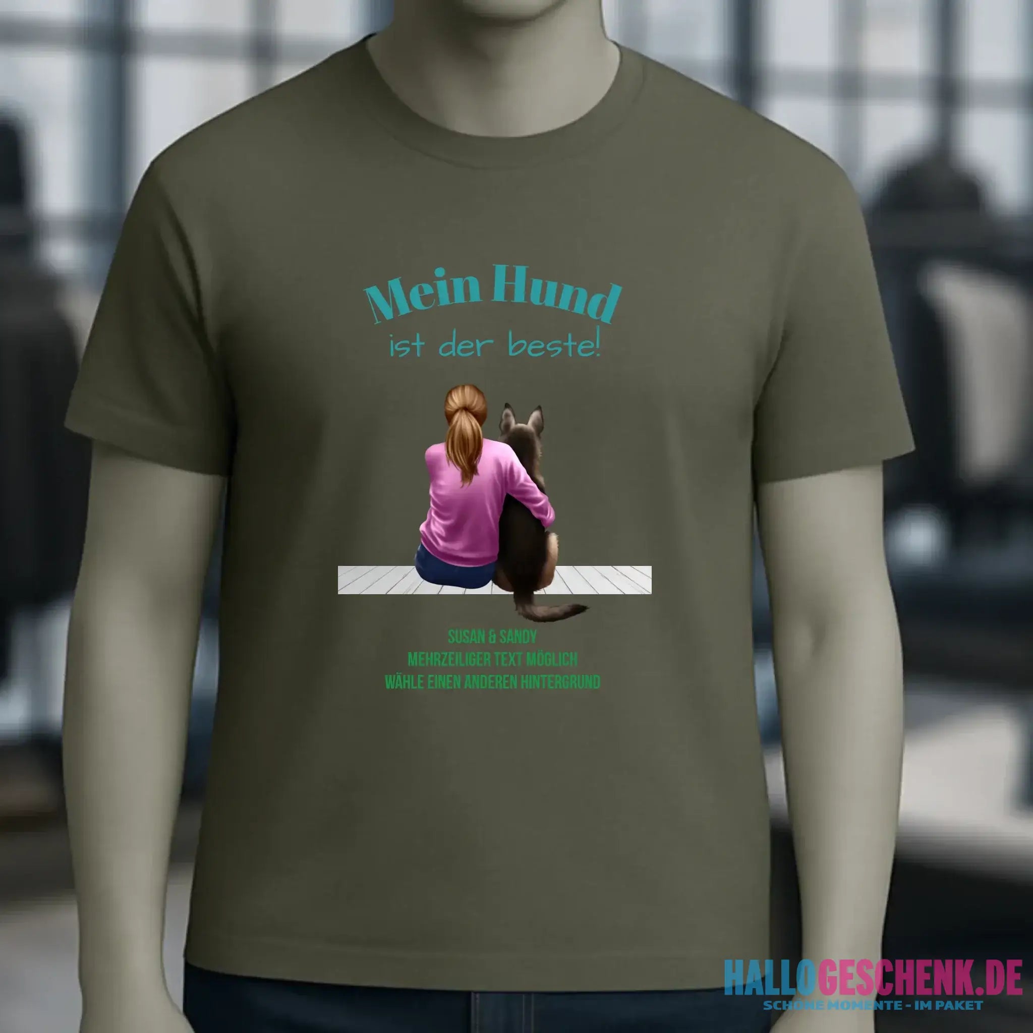 Frau mit Retriever oder Schäferhund, (personalisierbar) - Unisex Premium T-Shirt XS-5XL aus Bio-Baumwolle für Damen & Herren