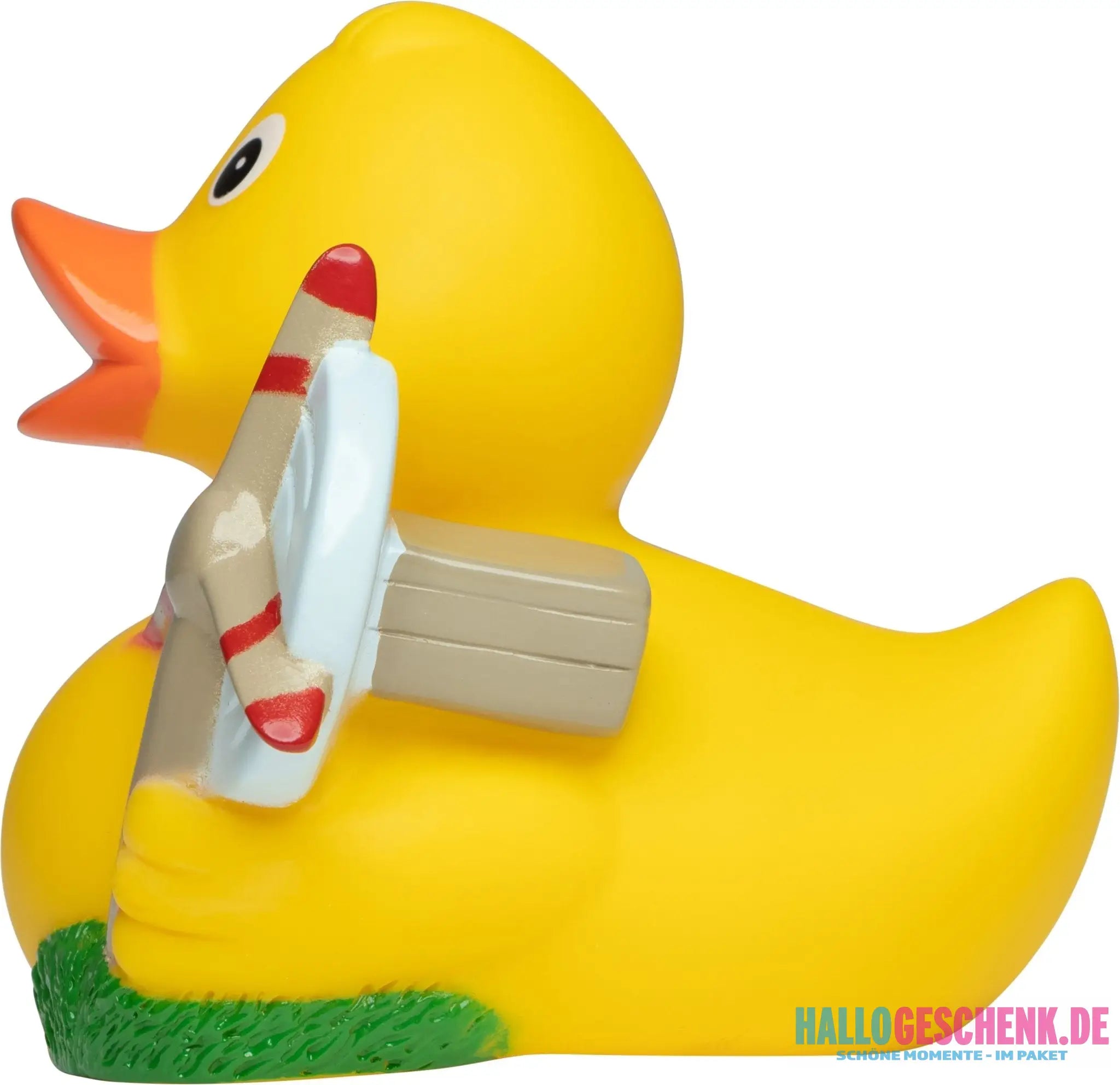 Bedingte Schwimmeigenschaften: Diese Enten verfügen über bedingte Schwimmeigenschaften und können aufgrund ihrer Form unter Umständen kippen. Enten mit einer Quietschfunktion können durch ein optionales Renngewicht stabilisiert werden.