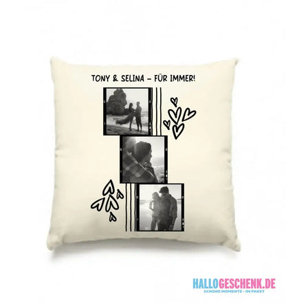 Ein personalisiertes Kissen ist immer eine gute Wahl für ein Geschenk und ein tolles Erinnerungsstück. Im Gegensatz zu einem Kleidungsstück, ist es immer da - wie ein Bild an der Wand. Zudem dient es als Dekoration, als Rückenlehne, als Kopfstütze und ist perfekt zum Umarmen. Dabei schafft es ganz nebenbei auch noch eine angenehme Atmosphäre im Raum. Verleihe deinem Zuhause eine persönliche Note mit unserem individuell gestaltbaren Kissen! Wähle zwischen den stilvollen Farben Weiß oder Natur. Das hochwertige Material sorgt für einen weichen, langlebigen Komfort, der sich perfekt in jedes Interieur einfügt. Ob als Geschenk oder als Highlight für dein eigenes Sofa – dieses Kissen wird garantiert zum Hingucker!