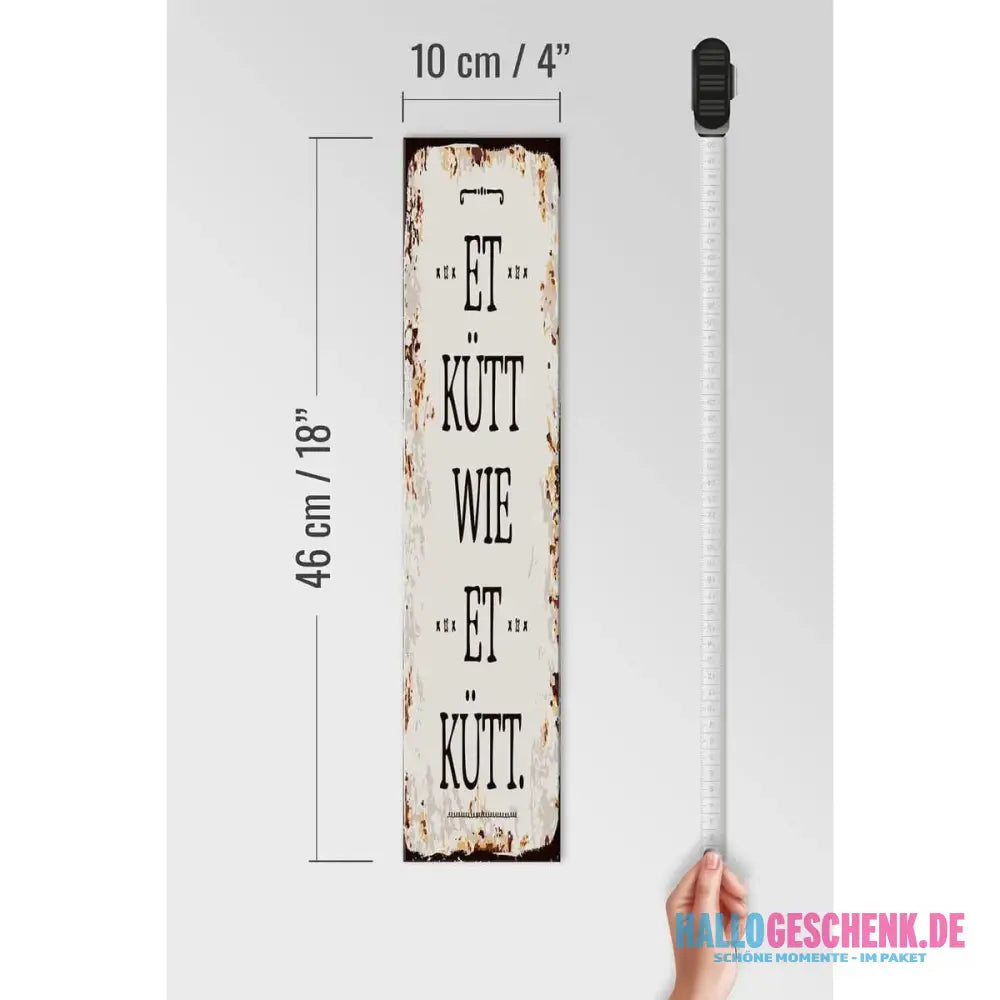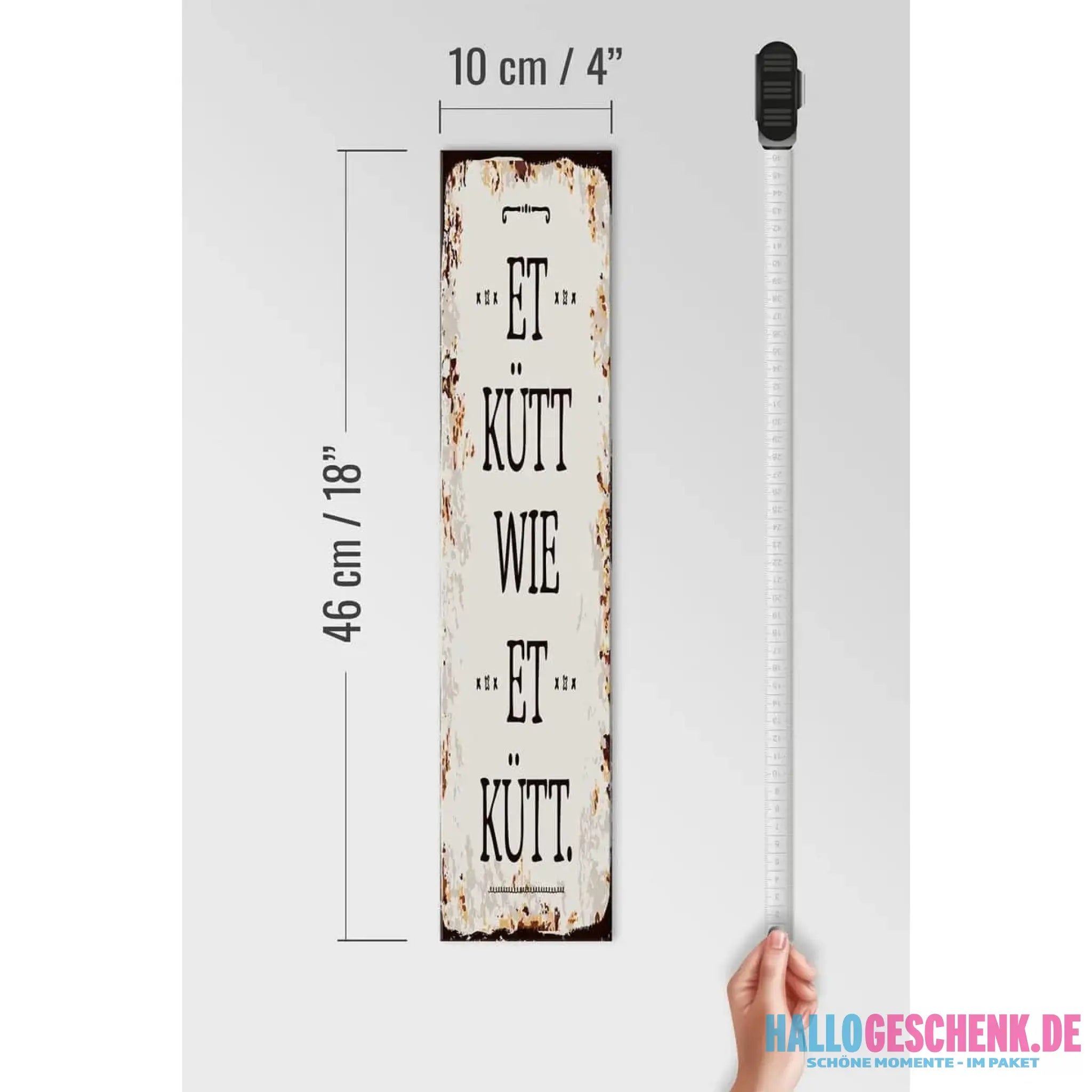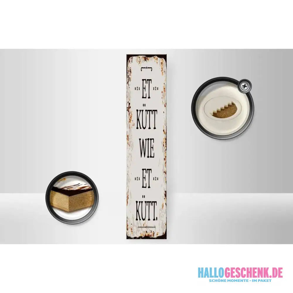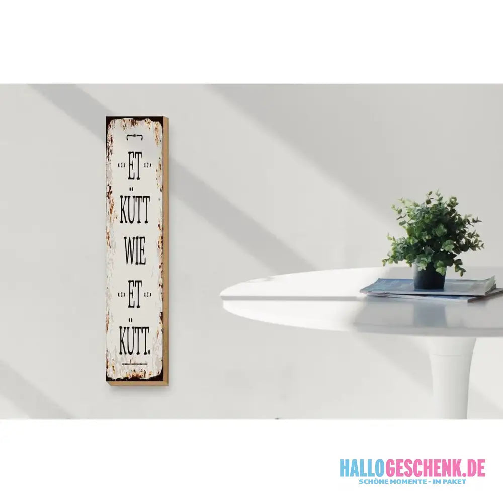 Holzschild Spruch 10x46cm Et Kütt wie et kütt kölscher Spruch Dekoration