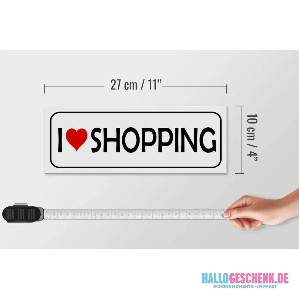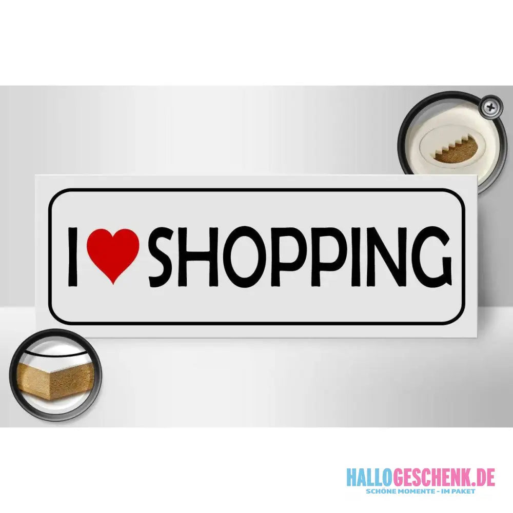 Holzschild Spruch 27x10cm I Love shopping Deko