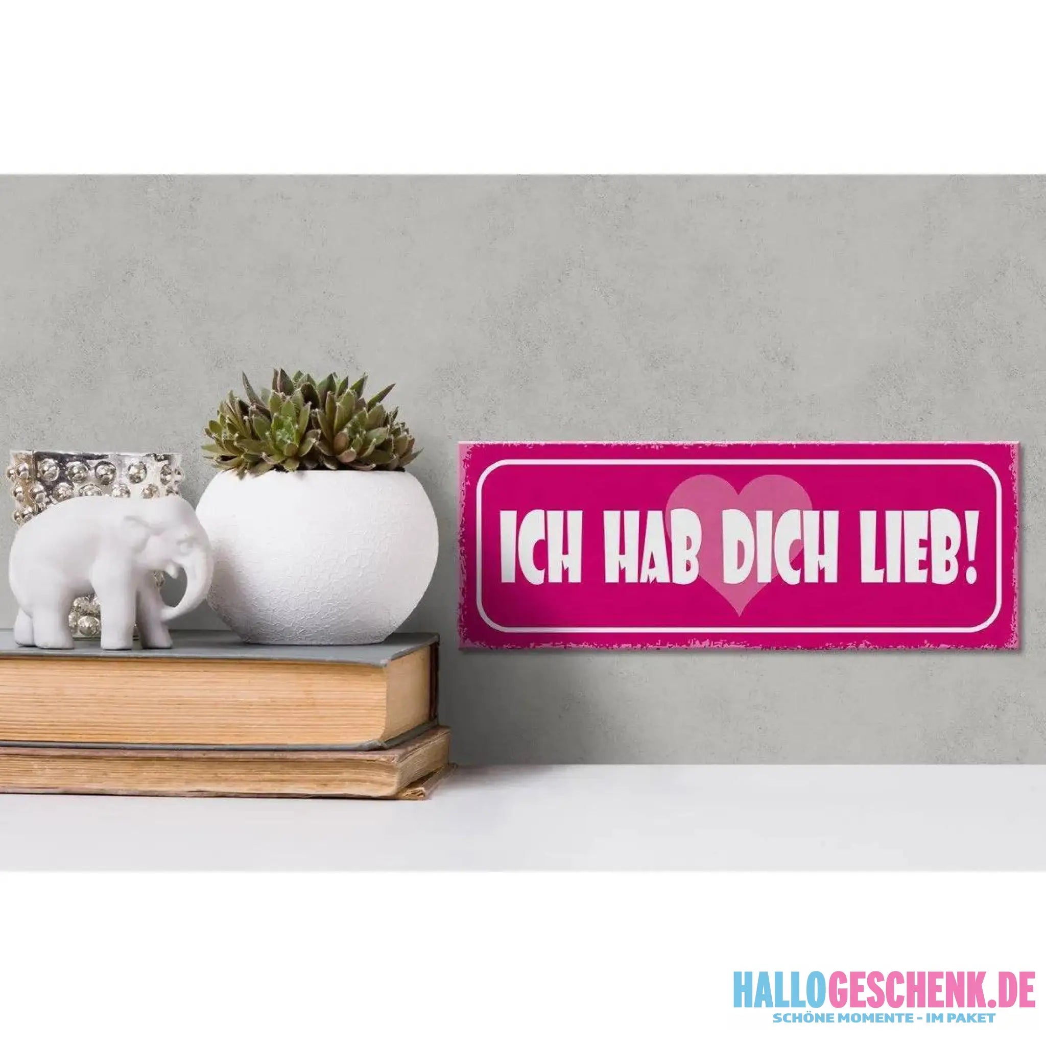 Holzschild Spruch 27x10cm Ich hab dich lieb Herz Deko