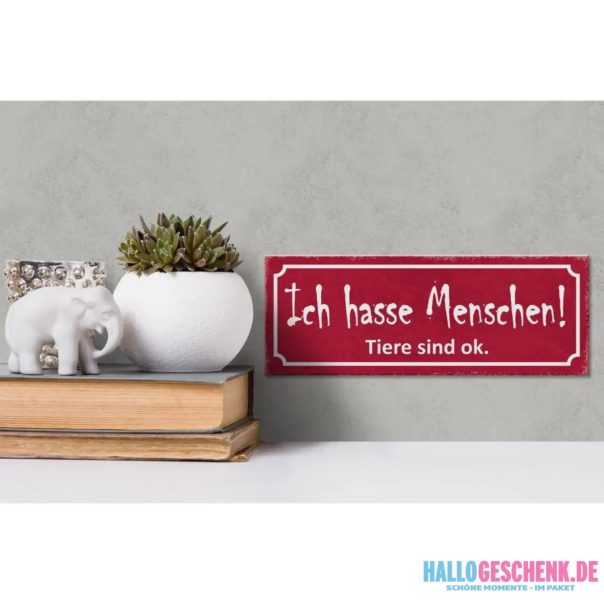Holzschild Spruch 27x10cm Ich hasse Menschen Tiere sind ok