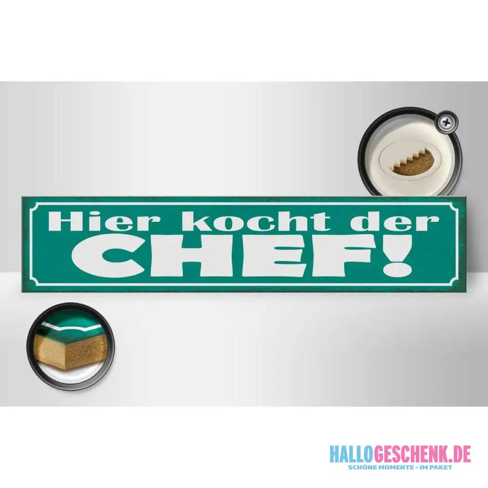 Holzschild Spruch 46x10cm Hier kocht der Chef Dekoration