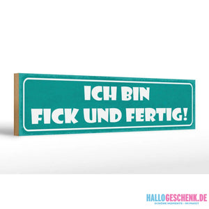 Holzschild Spruch 46x10cm Ich bin f**k und fertig Dekoration