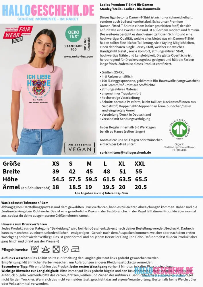 Ich liebe Hunde und 2-3 Menschen • Ladies Premium T-Shirt XS-2XL aus Bio-Baumwolle für Damen • Exklusivdesign • personalisiert