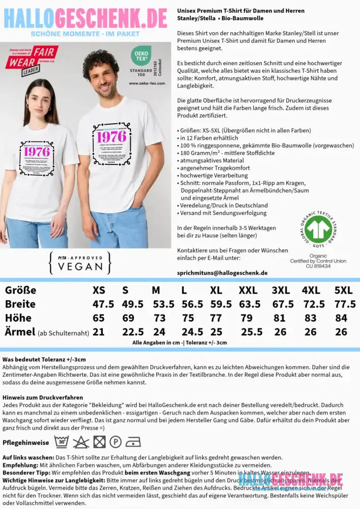 - Größen: XS-5XL (Übergrößen nur in ausgewählten Farben)