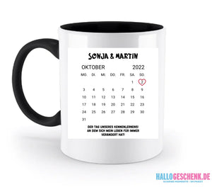 KALENDER-MOTIV mit Datum & Wunschtext • zweifarbige Tasse • Exklusivdesign • personalisiert