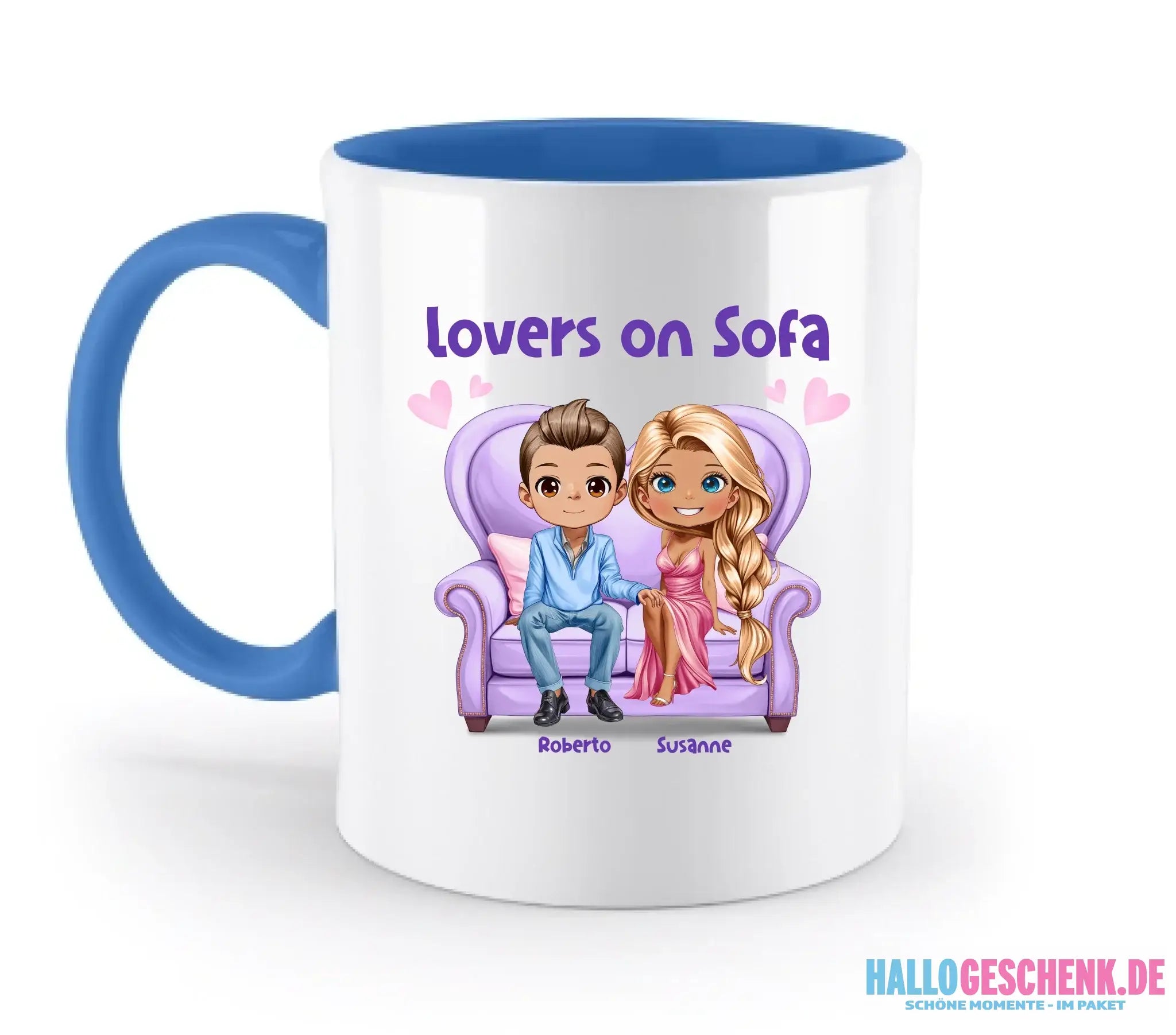 LOVERS ON SOFA (diverse Paare) • mit Wunschtext • zweifarbige Tasse • Exklusivdesign • personalisiert