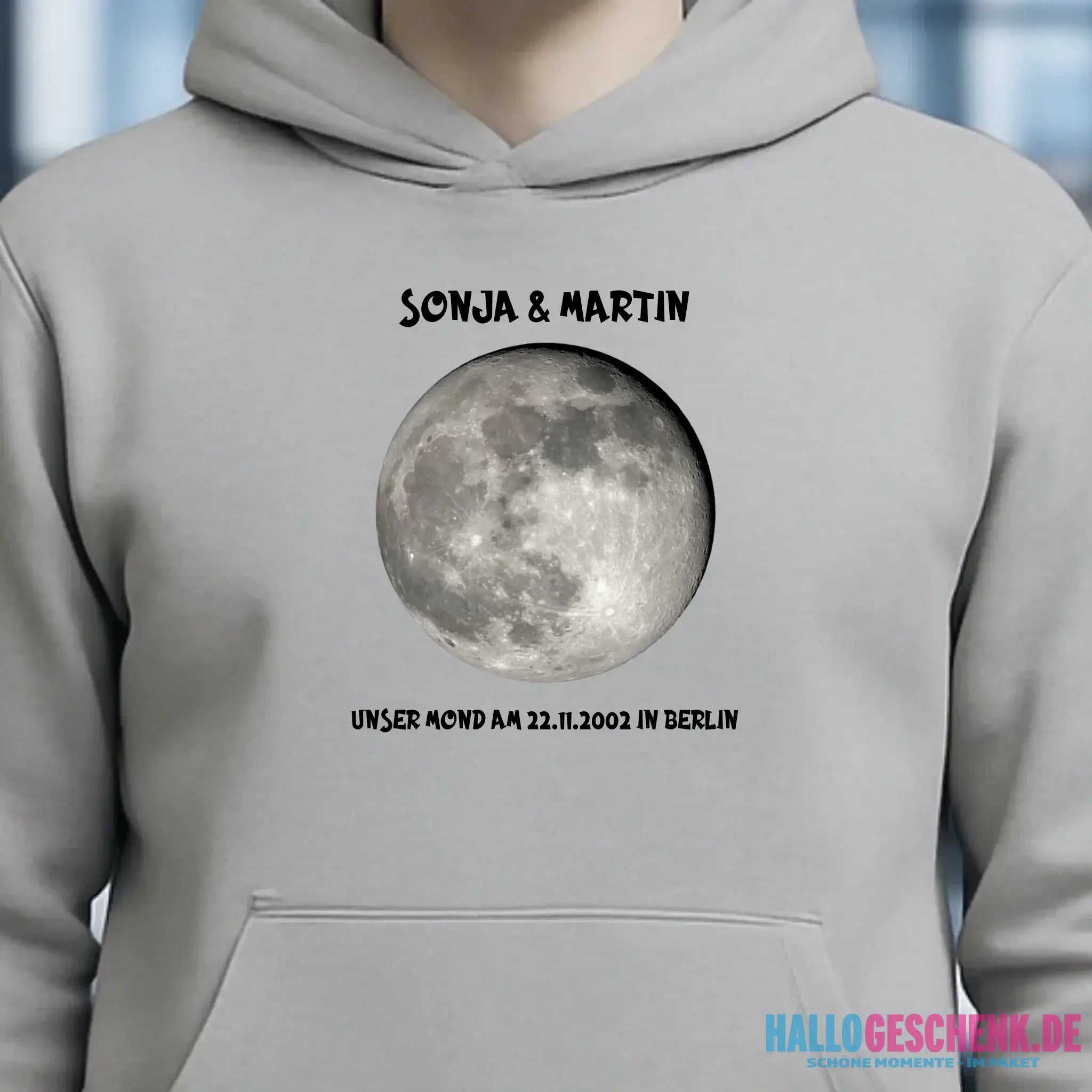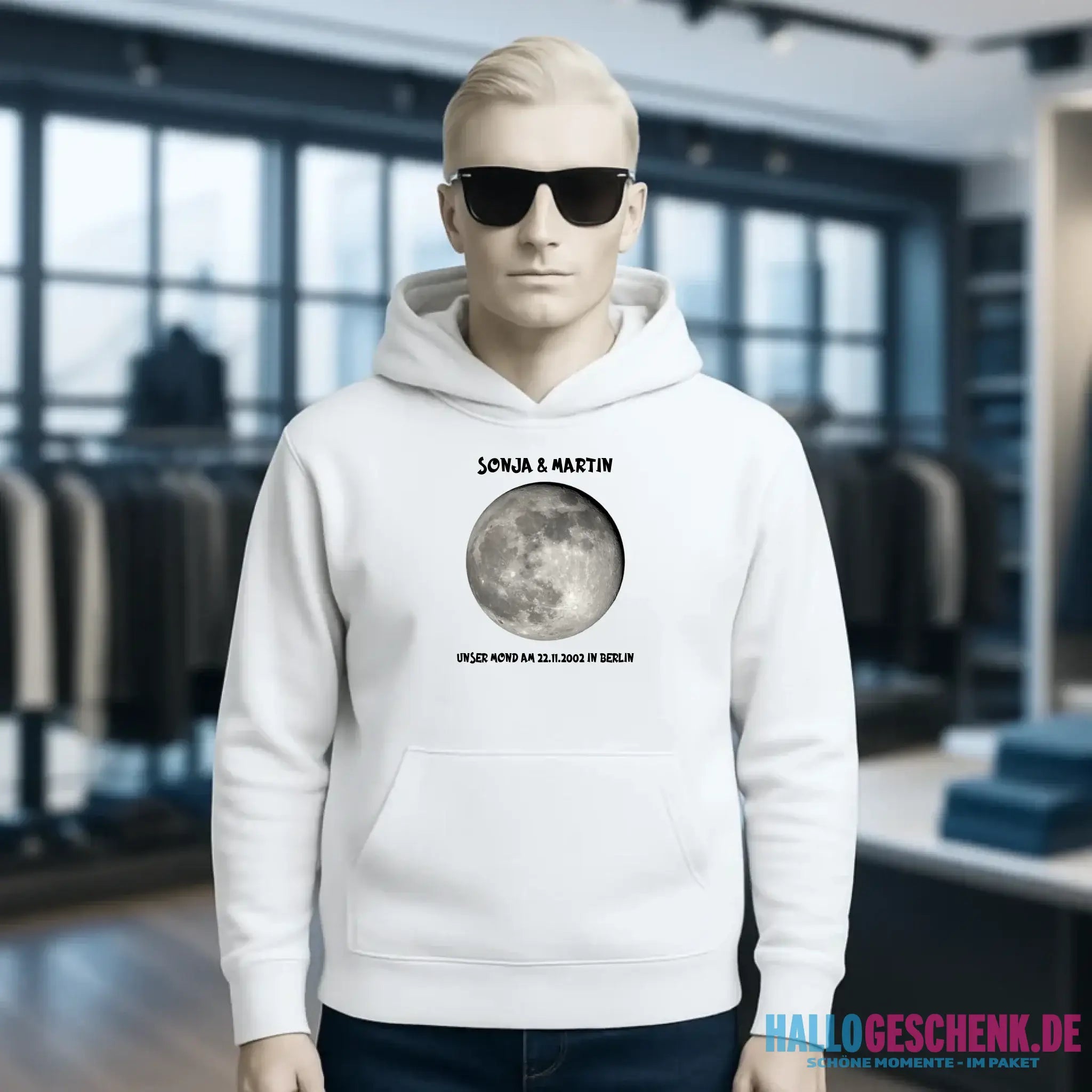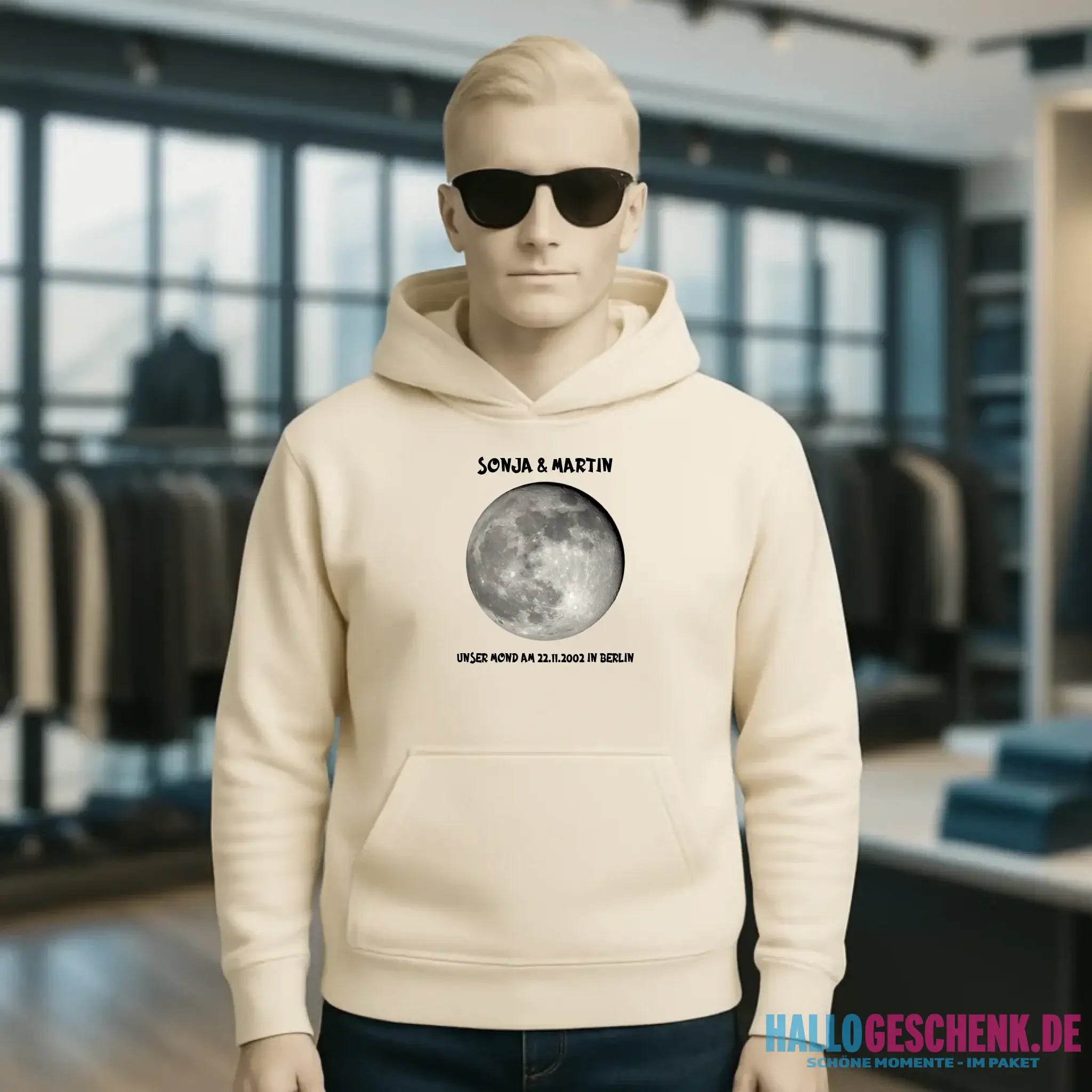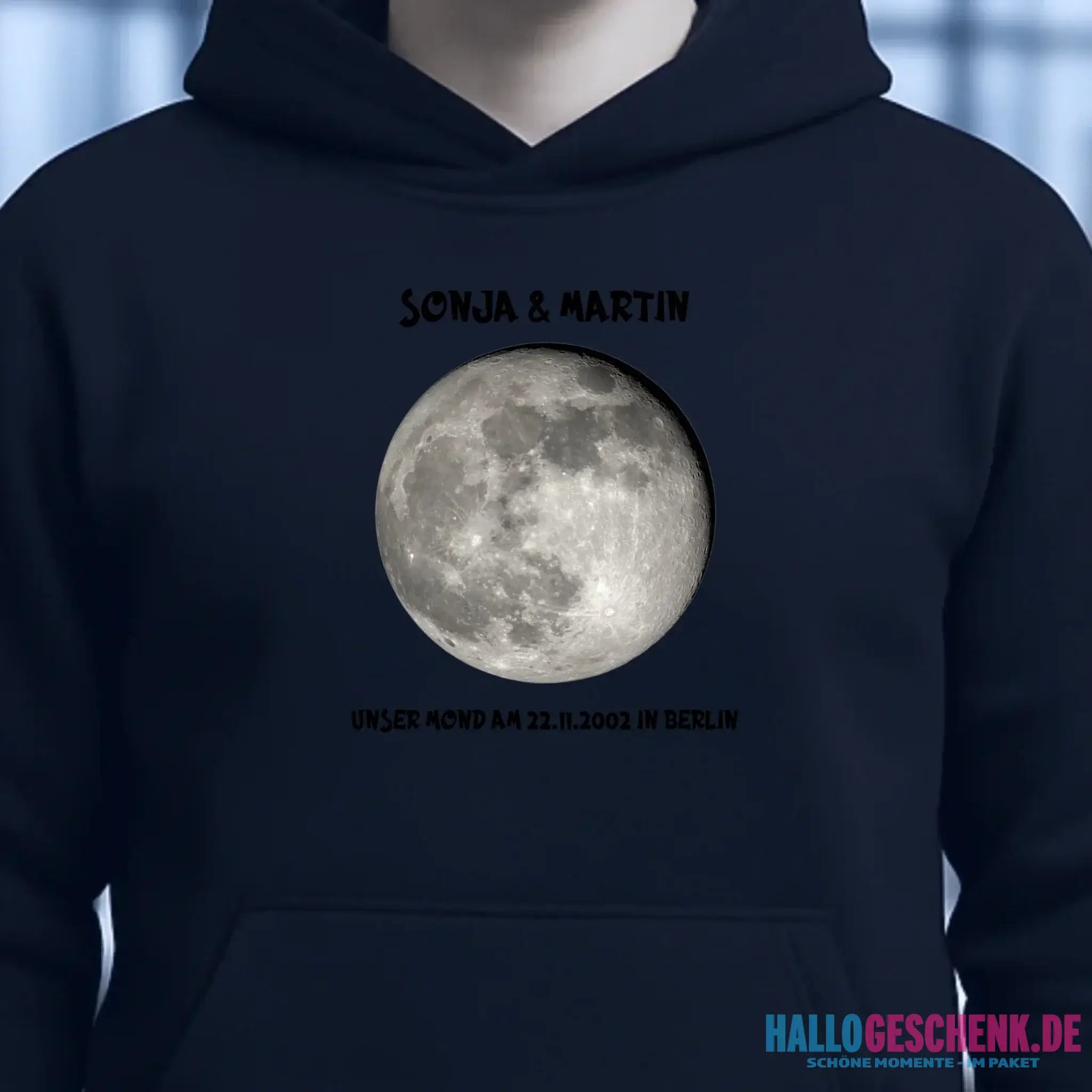 MONDPHASE (Blau/Silber/Gold) mit Wunschtext • Unisex Hoodie für Damen & Herren • Bio • personalisiert
