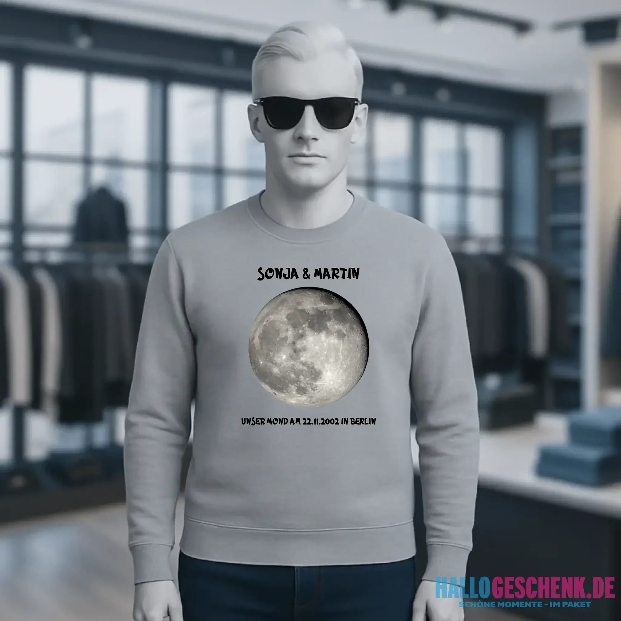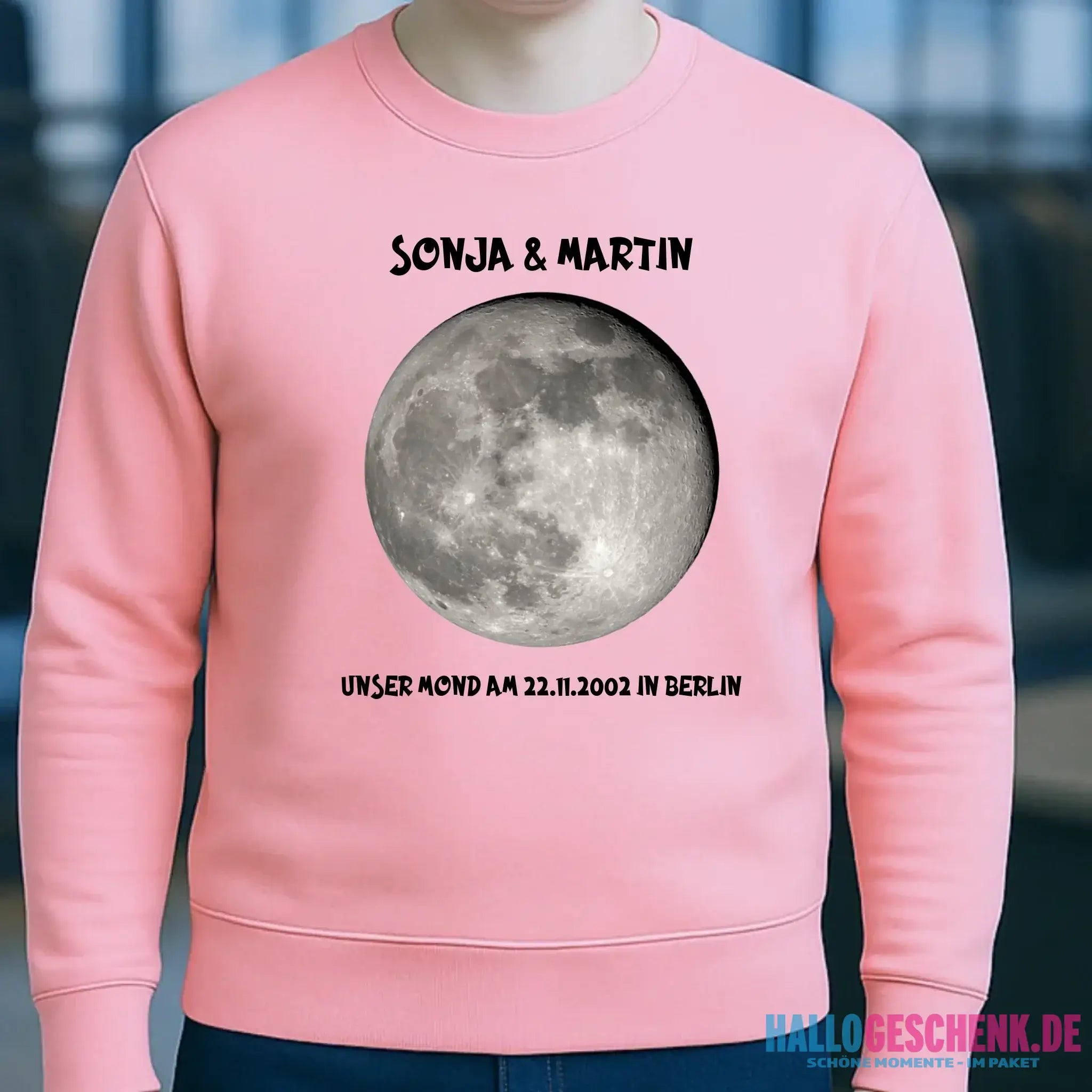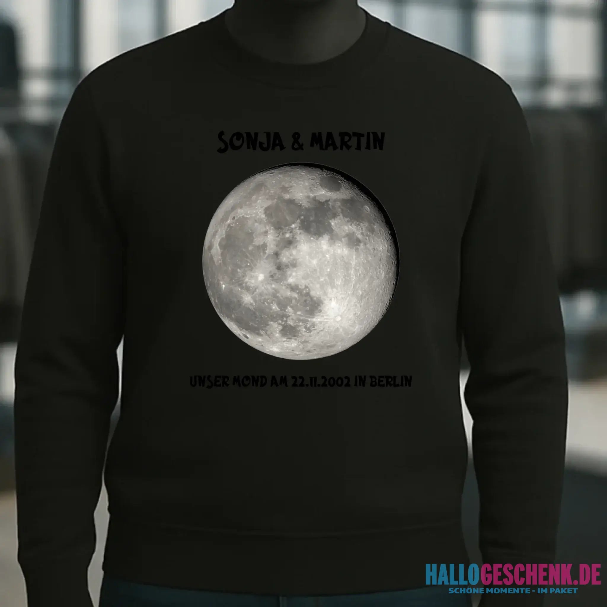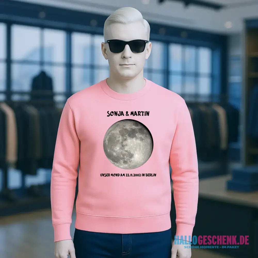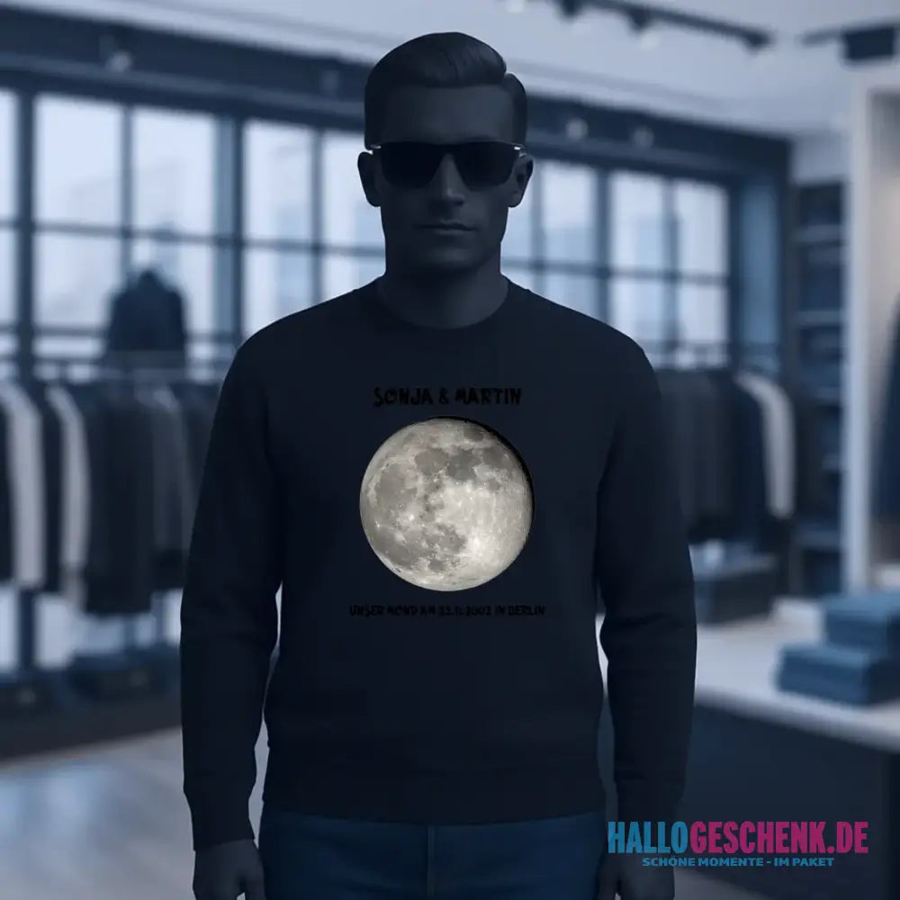 MONDPHASE (Blau/Silber/Gold) mit Wunschtext • Unisex Sweatshirt für Damen und Herren • Bio • personalisiert