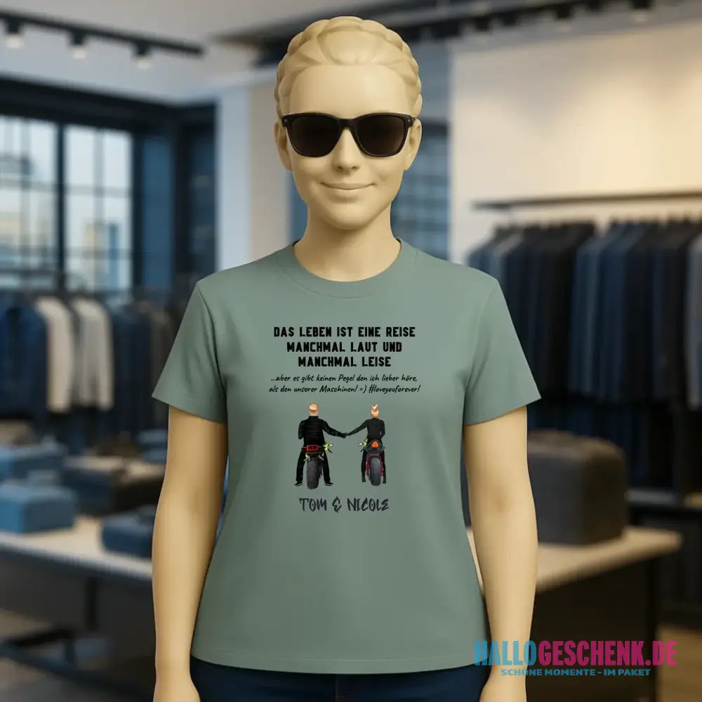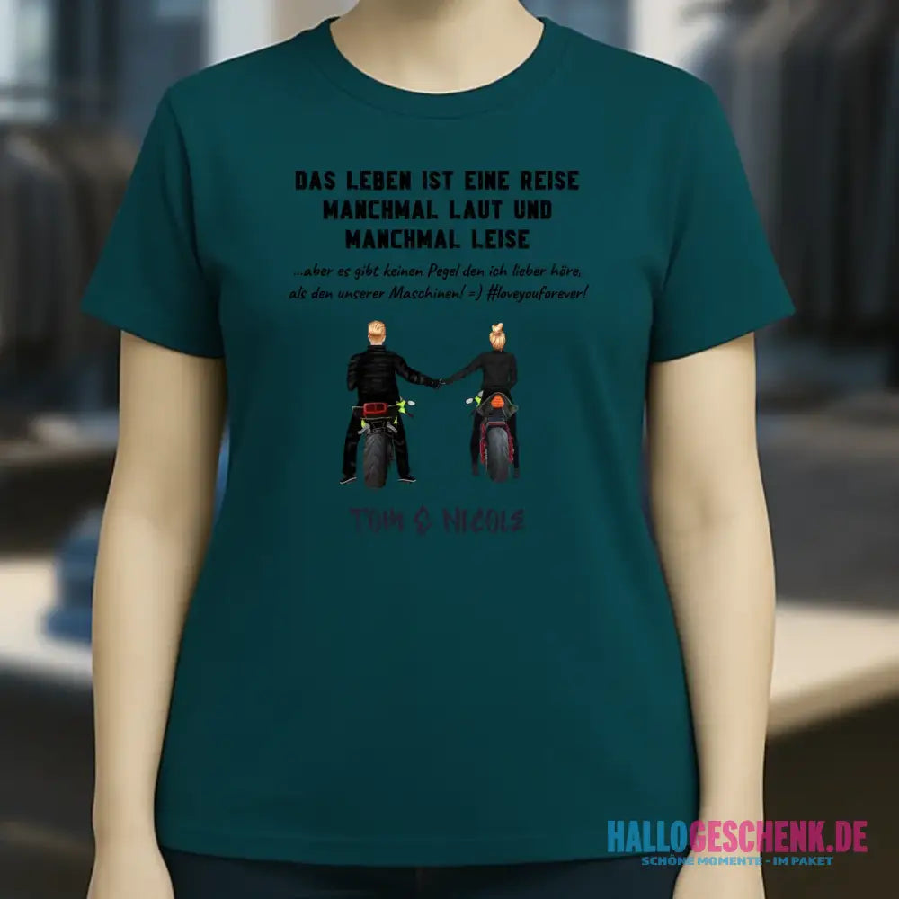 2in1: Motorrad Couple (personalisierbar) - Ladies Premium T-Shirt XS-2XL aus Bio-Baumwolle für Damen