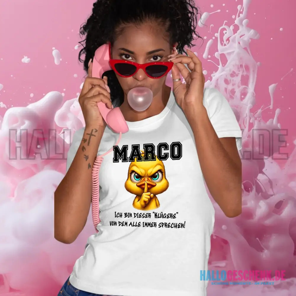 Smart Duck + WUNSCHNAME • Ladies Premium T-Shirt XS-2XL aus Bio-Baumwolle für Damen • Exklusivdesign • personalisiert