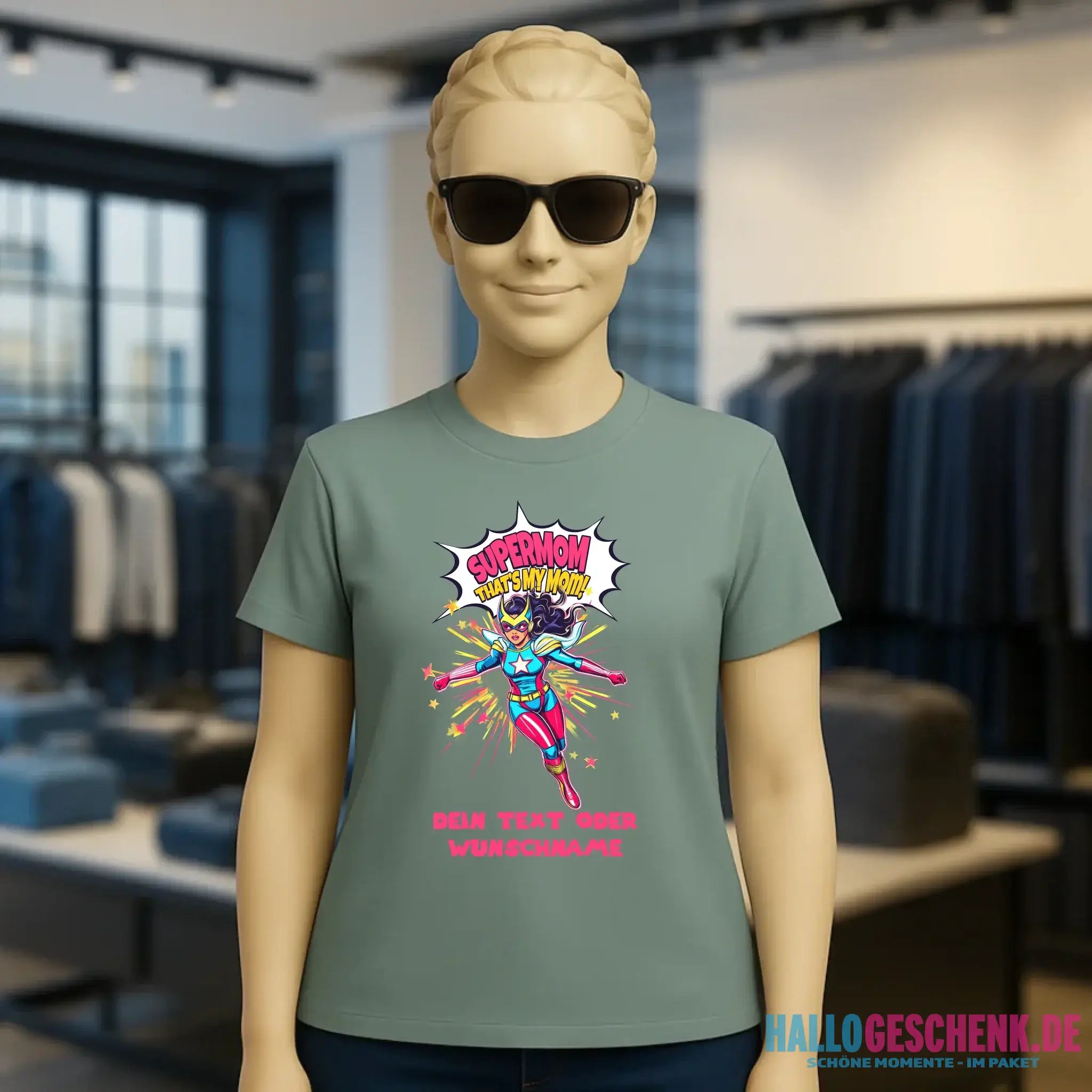 SUPERMOM • Mama • Damen T-Shirt • Bio • personalisierbar