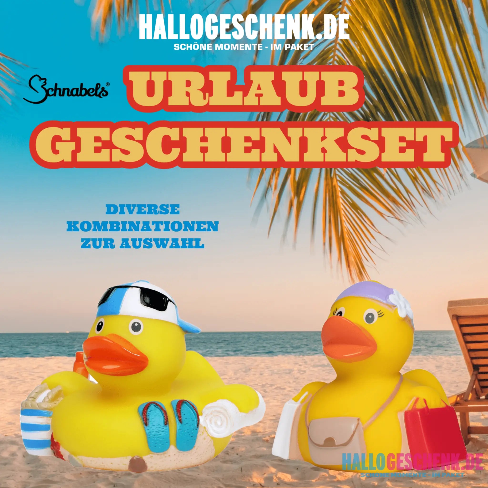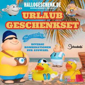 Urlaub • Geschenkset verschiedene Versionen • Quetschfigur • Badeente